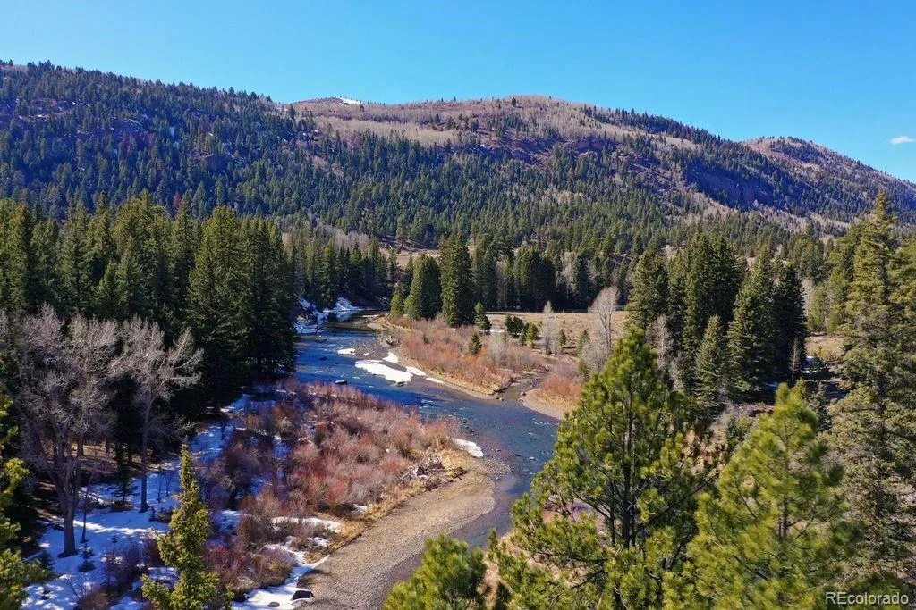 The stunning custom log residence sits on two spacious lots totaling 2 acres and features a large lawn, mature border trees for privacy, and incredible mountain views. Enjoy spectacular sunrises and sunsets from the expansive deck or take a short five-minute walk to the Conejos River with private fishing rights.