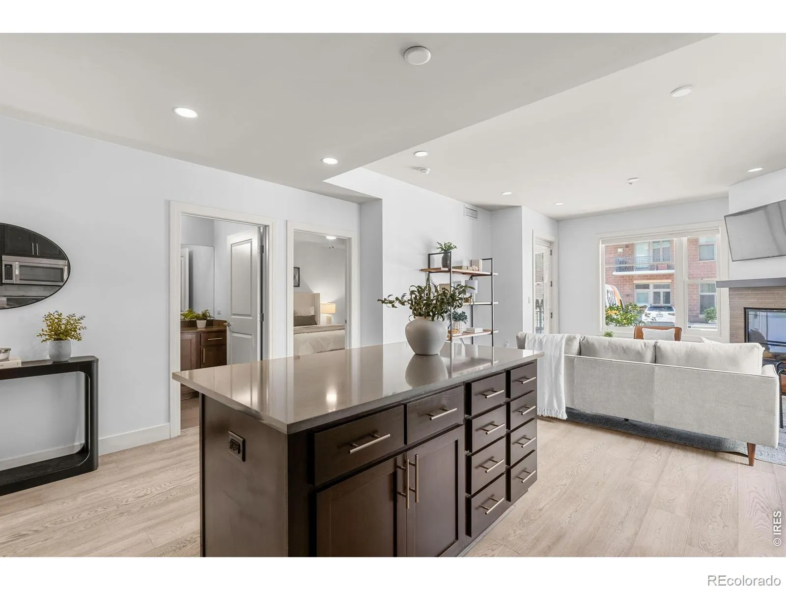 Step into a chic and stylish oasis at the Peloton complex in Boulder. This bright and lovely first-floor unit has been newly remodeled and painted in soothing neutral hues, offering a modern and inviting ambiance. With 1 bedroom and 1 bathroom spread across 1,021 square feet, the space is intelligently designed for comfort and functionality.The contemporary kitchen is a culinary delight, equipped with stainless steel appliances, sleek walnut cabinets, and elegant quartz countertops complemented by engineered wood floors. The living room and bedroom bask in natural light, courtesy of tall ceilings that enhance the apartment’s open feel. The bedroom boasts a walk-in closet and overlooks a private deck, perfect for a morning coffee. The Peloton complex brims with upscale amenities, including a full gym, heated pool, two rooftop hot tubs, outdoor grills, common event spaces, underground assigned parking, elevators, and even a movie theater. Plus, the building is pet-friendly. Additional storage location separate from unit. Enjoy the convenience of being steps away from local shopping and dining hotspots, and easy access to Boulder’s scenic biking and running paths.