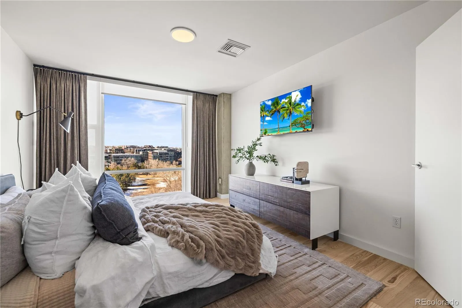 Welcome to 1620 Little Raven St #705, a rare top-floor, west-facing condo in Denver’s Riverfront Park neighborhood with sweeping views toward the Rockies. Large windows and an oversized balcony draw in natural light and showcase the surrounding park and mountain backdrop. The home has been thoughtfully updated throughout, beginning with a fully renovated kitchen featuring a Thermador gas range and new appliances, custom cabinetry, new quartzite countertops, a waterfall island, and updated plumbing fixtures. Refinished hardwood floors throughout and a new gas fireplace with a marble surround anchor the open living space. Both bathrooms have been fully renovated with new tile, cabinetry, lighting, and fixtures, while custom window treatments add a refined finish throughout the home. The layout offers two well-separated bedrooms, including a spacious primary suite with balcony access. Furnishings included! Residents of One Riverfront enjoy secure access, on-site management, access to the Riverfront Park Athletic Club, onsite storage unit, and landscaped garden areas. Ideally positioned in Riverfront Park, the home offers easy access to Commons Park, the Cherry Creek Trail, the South Platte River Trail, Union Station, and some of Denver’s best dining and coffee spots. A rare opportunity to own a top-floor home with mountain views in one of Denver’s most desirable urban neighborhoods. View virtual tour here: https://www.youtube.com/shorts/4KTDahr8aRc