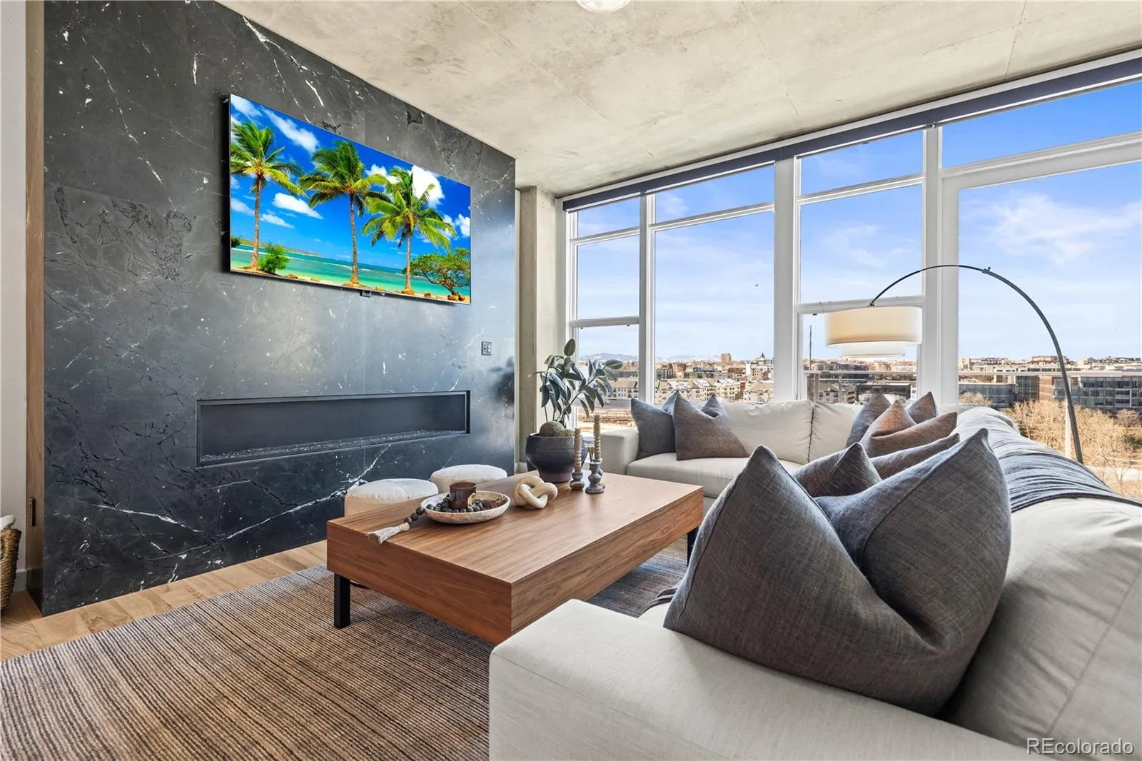 Welcome to 1620 Little Raven St #705, a rare top-floor, west-facing condo in Denver’s Riverfront Park neighborhood with sweeping views toward the Rockies. Large windows and an oversized balcony draw in natural light and showcase the surrounding park and mountain backdrop. The home has been thoughtfully updated throughout, beginning with a fully renovated kitchen featuring a Thermador gas range and new appliances, custom cabinetry, new quartzite countertops, a waterfall island, and updated plumbing fixtures. Refinished hardwood floors throughout and a new gas fireplace with a marble surround anchor the open living space. Both bathrooms have been fully renovated with new tile, cabinetry, lighting, and fixtures, while custom window treatments add a refined finish throughout the home. The layout offers two well-separated bedrooms, including a spacious primary suite with balcony access. Furnishings included! Residents of One Riverfront enjoy secure access, on-site management, storage, and landscaped garden areas. Ideally positioned in Riverfront Park, the home offers easy access to Commons Park, the Cherry Creek Trail, the South Platte River Trail, Union Station, and some of Denver’s best dining and coffee spots. A rare opportunity to own a top-floor home with mountain views in one of Denver’s most desirable urban neighborhoods. View virtual tour here: https://www.youtube.com/shorts/4KTDahr8aRc