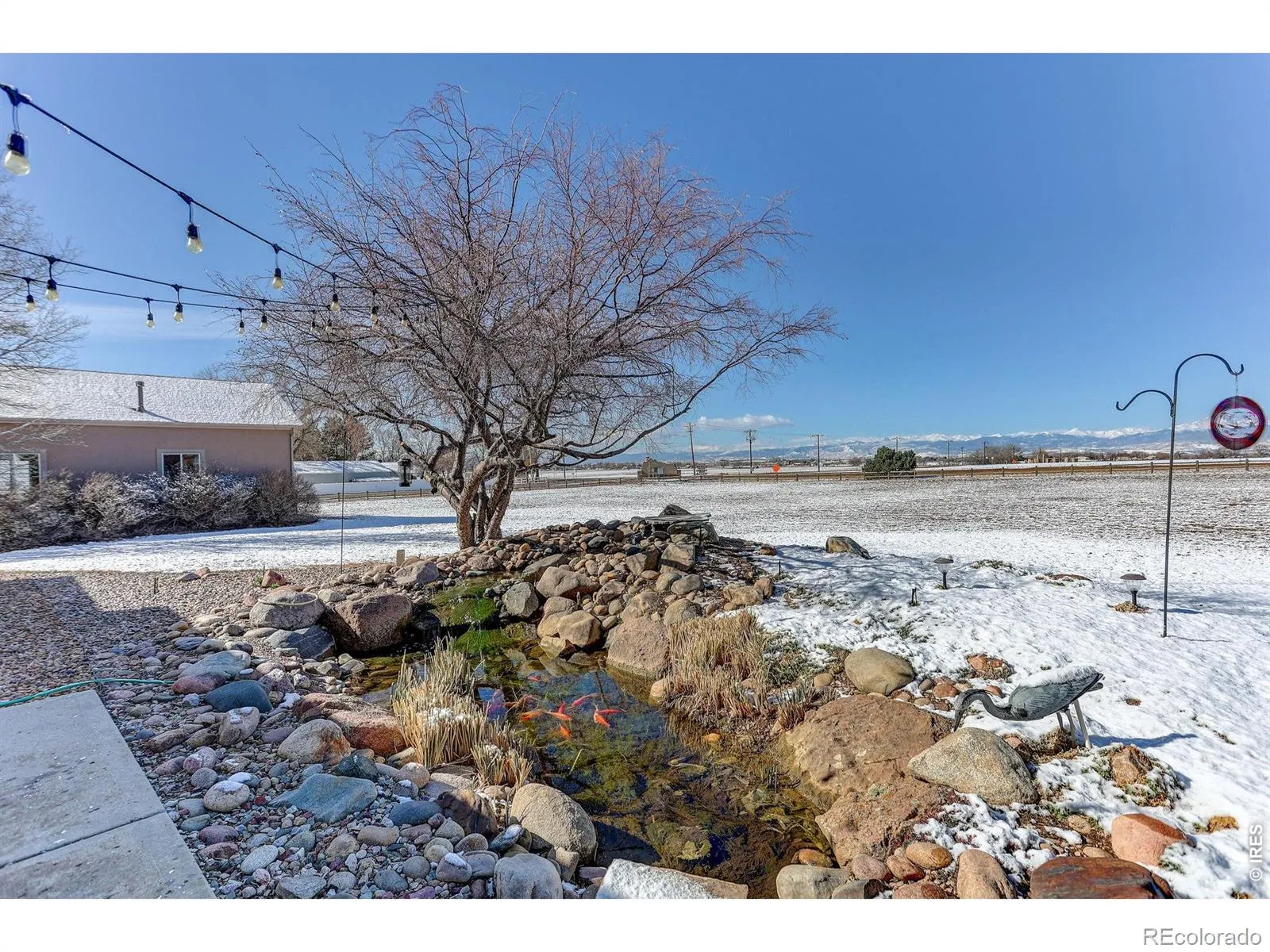 Welcome to this beautifully maintained one-owner custom home set on a spacious 2-acre corner lot with breathtaking, unobstructed mountain views. Designed for both comfort and functionality, this home offers generous living spaces, thoughtful upgrades, and exceptional indoor and outdoor amenities. Step inside to a light-filled interior highlighted by a vaulted living room with a cozy fireplace, creating a warm and inviting space to gather. The home features a formal dining room as well as an eat-in kitchen equipped with a gas 5-burner cooktop, double wall ovens, refrigerator, microwave, roll-out cabinet shelving, and a large pantry, making it perfect for everyday living or entertaining. The main level also includes a dedicated workout room that could easily serve as a private office, convenient main-floor laundry, and a powder bath. Upstairs, the spacious primary suite offers a luxurious 5-piece bath, while additional bedrooms are served by a 3/4 bath. The fully finished basement expands the living space with an oversized game and recreation room featuring a bar area, along with another 3/4 bath-ideal for entertaining guests or relaxing with family. Comfort and efficiency are enhanced with two furnaces, two A/C units, and two hot water tanks. Car enthusiasts and hobbyists will appreciate the attached 4-car garage plus a custom detached 1647 sq. ft. heated shop/garage designed to accommodate an RV, complete with matching exterior finishes as the house, cabinetry with work counterspace, upper-level storage, a half bath, and an RV cleanout. The beautifully landscaped backyard is an outdoor retreat featuring a koi pond water feature, oversized patio, gas fireplace gathering area, split-rail fenced yard, and sprinkler system-all perfectly positioned to enjoy the stunning mountain backdrop. Additional highlights include an owned security system and low HOA dues. This exceptional property offers the perfect blend of space, craftsmanship, and Colorado lifestyle living.