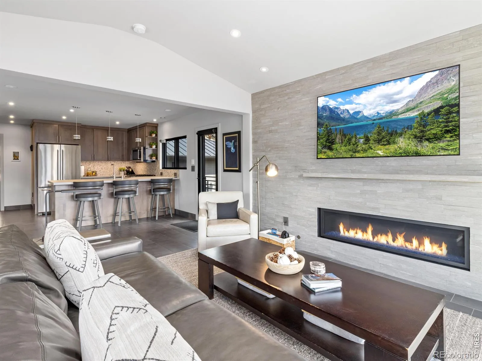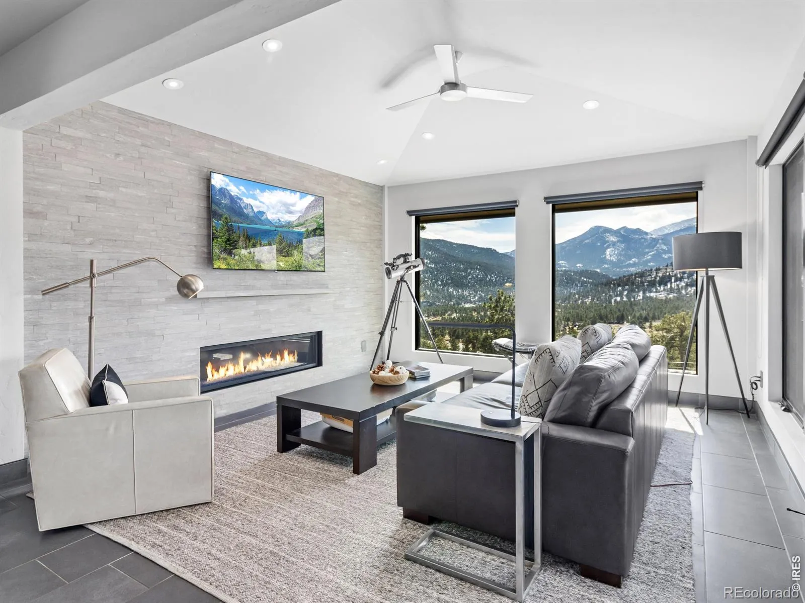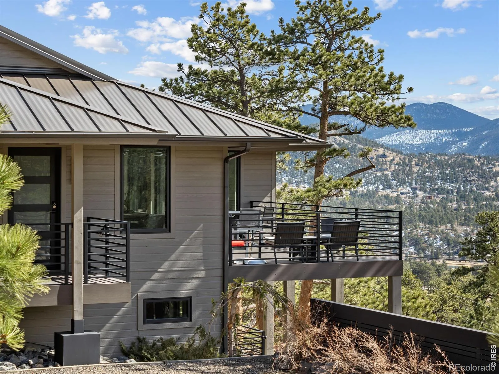 Wow! Bivouaking on the southern slope of Deer Ridge, & only 4 properties away from the Rocky Mountain Nat’l Park boundary and the east Deer Mtn trail, 2280 Valerian sits on a 1.4 acre lot commanding views of snow-capped peaks from Longs Peak to Stones Peak in the Front Range stretch of the Great Divide. Wow!! Have you always wanted to live somewhere that says Wow?! All day long? Everyday? This mountain modern home in the Upper High Dr neighborhood on the west side of Estes is that home. As you sip your coffee and watch the Peaks of the Divide catch the first rays of dawn, Wow! As you watch amazing sunset after amazing sunset, never getting old…Wow! As you experience the subtlety and soul-stirring transcendence of Alpenglow. Well… Wow! As the owls call from the tree by the deck & the Golden Eagles soar by, the bobcat chases the chipmunk, the Turkeys trot through, & the Elk wander by, Wow! Longs Peak is the central motif, captured in the phalanx of south-facing windows. It’s the recurring theme that fills your views and lifts your soul. With your favorite 14er as the focal point, you’ll spend days glued to the telescope discovering the contours and prominences of Longs and it’s approaches. And the peaks of the Divide beckon to the west, too. The home has a modern sensibility yet feels like your mountain cabin home (cue banjo twangs). It embraces both a rustic mountain vibe and its contemporary designs. With 2 BR suites on the main floor and another below, it’s a gathering place by design. This sleek contemporary home blends clean architectural design with the warmth of a true mountain retreat. Expansive windows fill the home with natural light while perfectly framing the iconic peaks. Step outside onto the spacious deck and take in the unobstructed alpine views, creating the perfect setting for relaxing or entertaining. There it is again… Wow! Furniture stays for a turnkey – drop off the groceries and hit the trail! – mountain home. Wow!!