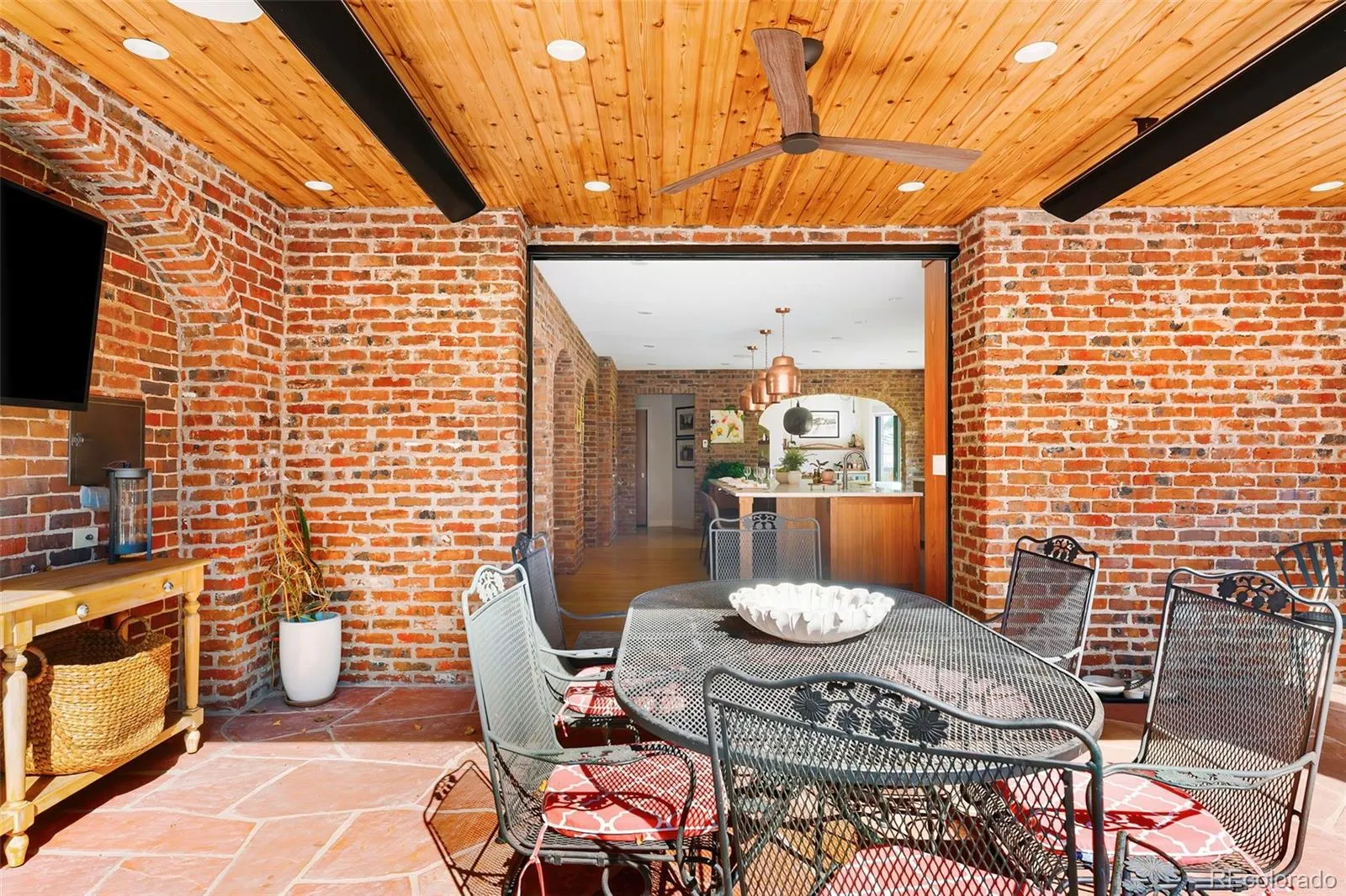 Coming to market for only the second time since it was built almost 90 years ago, this stunning Tudor sits on a grand lot on the iconic, curved Ivy Street in Old Crestmoor. Built in 1939, this architectural treasure underwent a full renovation and addition in 2021, preserving its historic integrity while incorporating the scale and comfort of modern living. Unlike renovations that dilute character, this transformation honored the original brick, custom ironwork, and leaded glass windows, while introducing contemporary spaces designed for today. The main floor boasts an expansive living room, a library with custom, lighted Vogo shelving, and a private office. The heart of the home – the kitchen – features a massive farmhouse island, Miele, Sub-Zero, and Viking appliances, and a dedicated coffee station. The dine-in kitchen is perfectly bookended by a formal dining room with beverage bar on one side and seamless outdoor living on the other. Triple sliding glass doors tuck completely into the wall, dissolving the boundary between the home and the huge backyard garden defined by the towering trees of Crestmoor and featuring a heated covered patio, built-in grill, and brick fireplace. The primary suite is a vaulted retreat with a fireplace and a spa-bath featuring a soaking tub an oversized double rain shower, and custom closet. The upper level includes an en-suite bedroom, two additional guest rooms, and a spacious laundry room. The lower level offers an en-suite guest room, wine cellar, convenient second laundry, and a versatile recreation/media studio and fireplace. High-tech upgrades include owned solar, radiant heat, and comprehensive home automation. Residents of Crestmoor Filing 1 also receive preferential membership access to the highly coveted Crestmoor Swim and Tennis Club. Don’t miss this rare opportunity to live in a magnificent home on a magical block in one of Denver’s most beautiful neighborhoods.