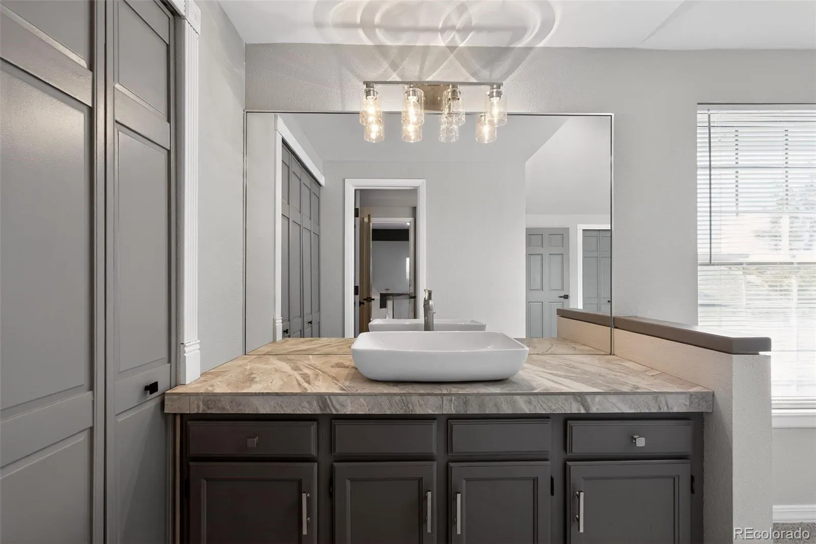 Both bathrooms have been refreshed with updated vanities, vessel sinks, modern faucets, and fixtures. The primary suite includes a private vanity and dressing area for added convenience.