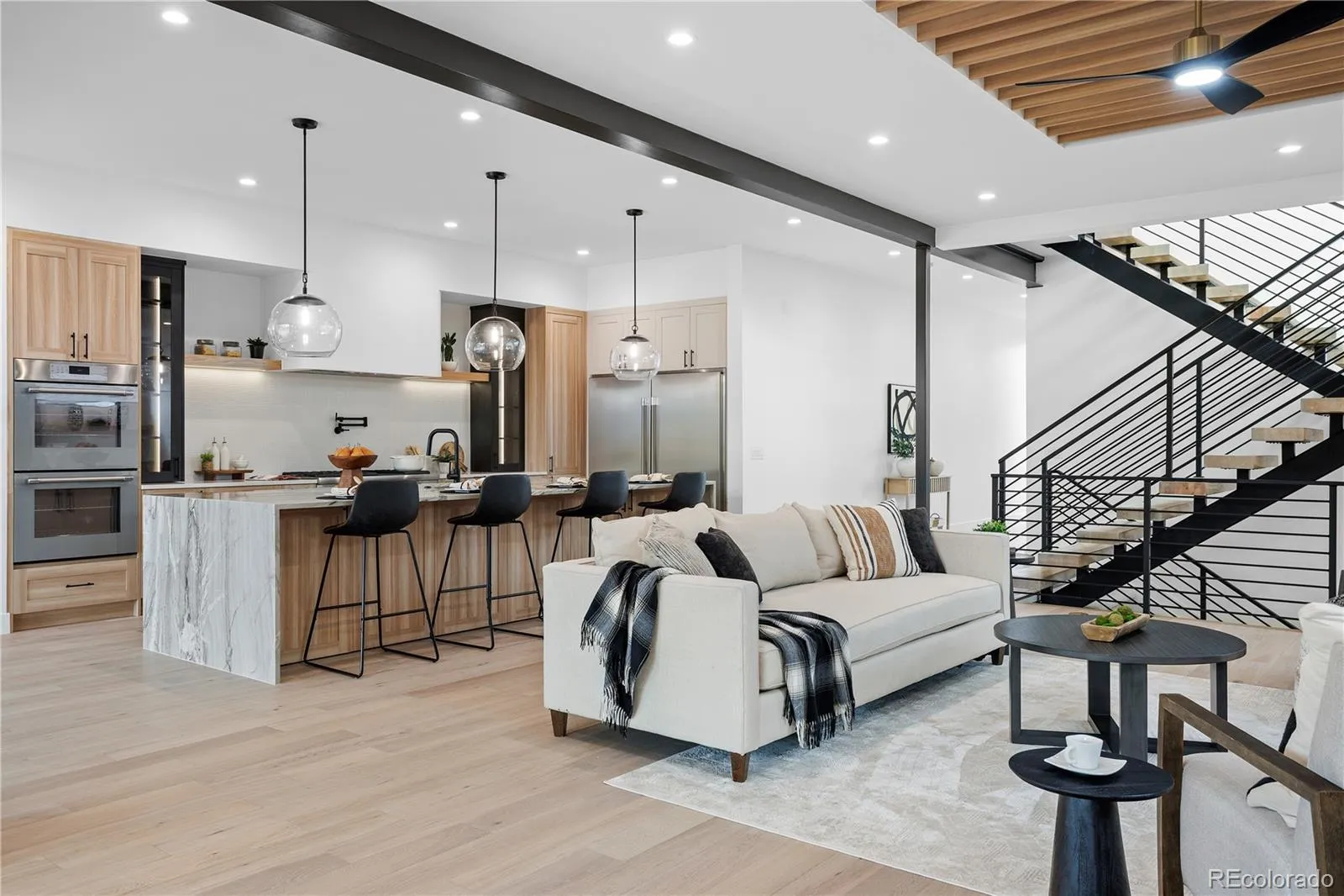 Crafted by PBG, this 5-bed, 5-bath home in the sought-after Observatory Park neighborhood showcases warm modern interior comfort paired with distinctive Scandinavian-inspired exterior architecture. This home sits minutes away from dining and shopping, including 15 min to Cherry Creek and 10 min to Wash Park/Platt Park. The exterior blends high-end Nichiha (30 YR Warranty) siding with smooth stucco, accented by wood siding creating a façade that feels sleek and timeless.