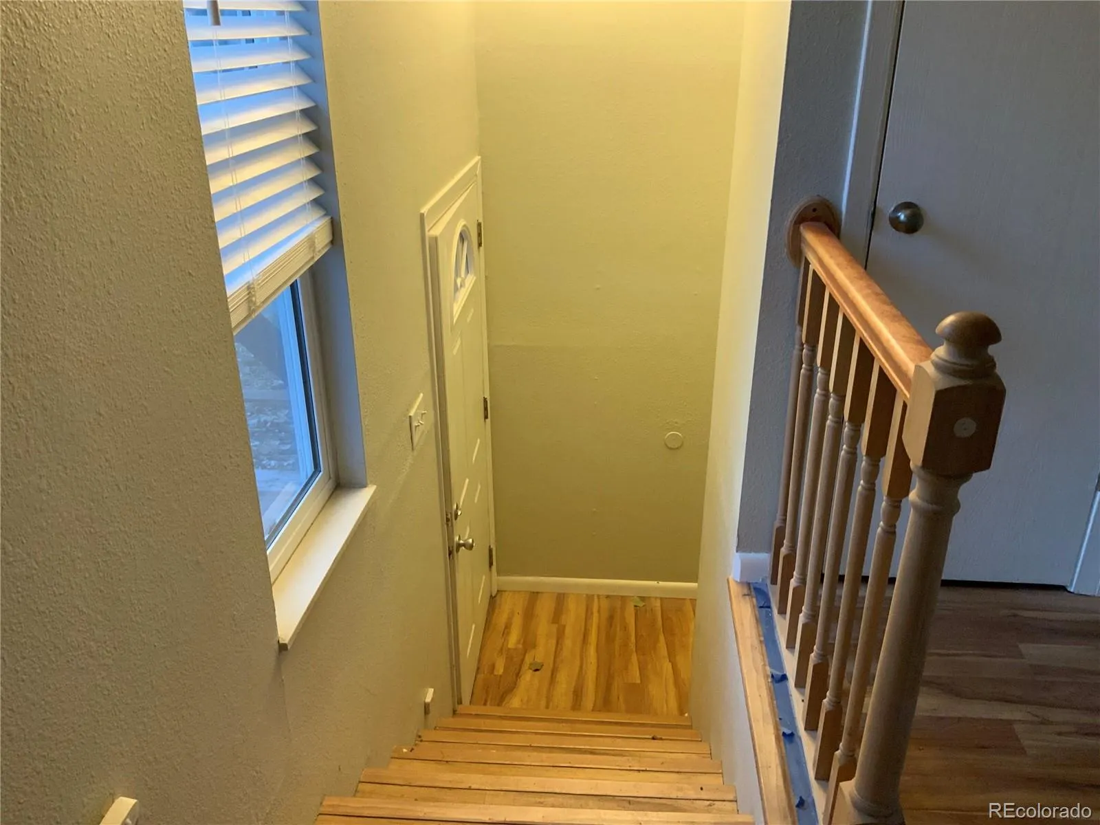 Cute townhouse unit, with 4,575 SF lot! Features 1,102 square feet of living space, plus a chain link fenced back yard, storage shed and off street parking. Top level offers open living room, dining space, kitchen and conveniently located half bath combo with laundry hook-ups. Downstairs level has three bedrooms and a full bath. Dog door leads to back deck measuring 8 X 23 (partially covered) with full flight of stairs leading to backyard. plenty of parking. NO HOA!