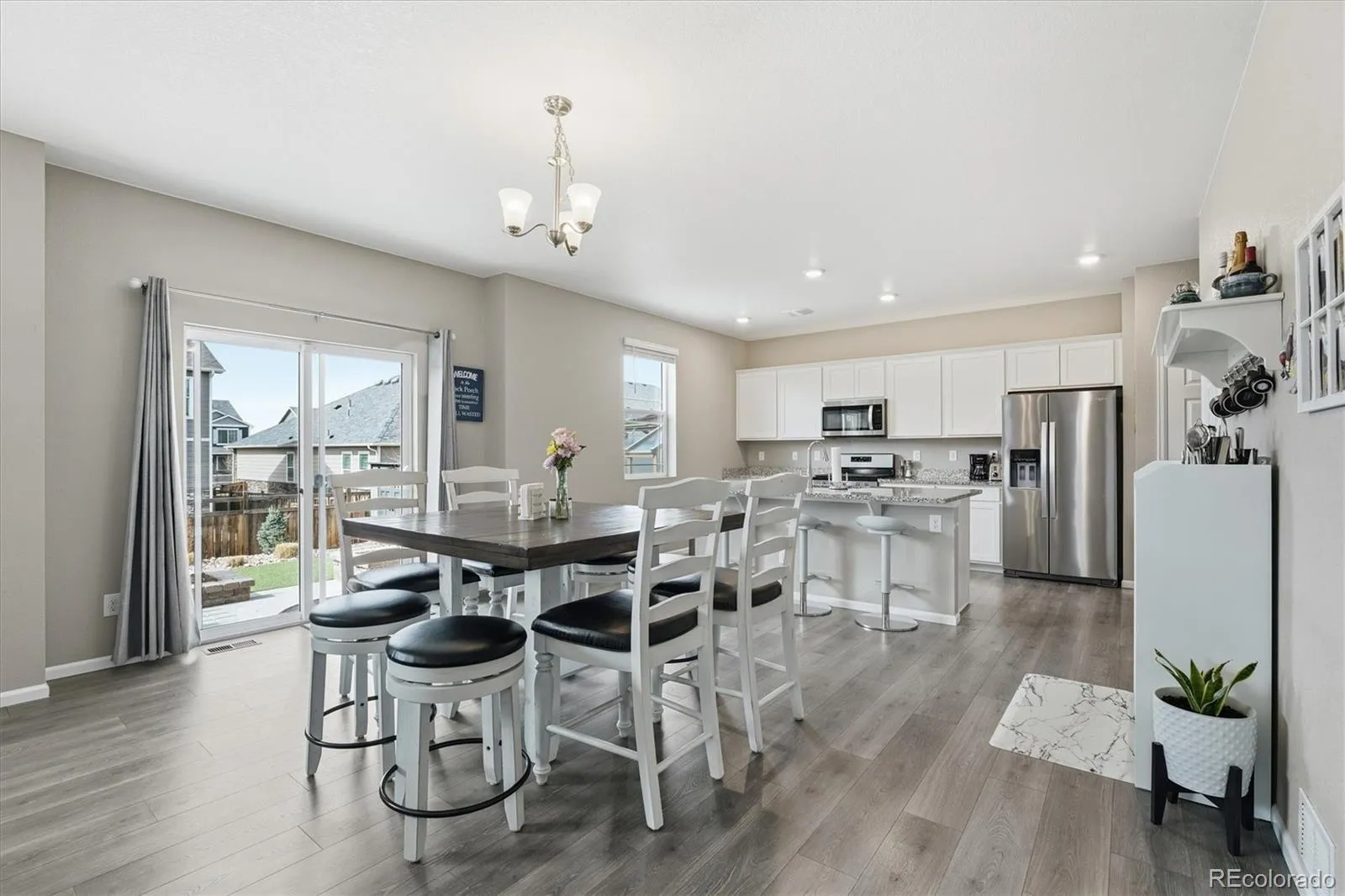 As you step inside, you’ll immediately notice the refreshing finishes throughout. The main level features a welcoming foyer with closet space and a convenient powder room. The spacious great room provides plenty of room for all your furnishings and flows seamlessly into the dining area and beautifully updated kitchen.