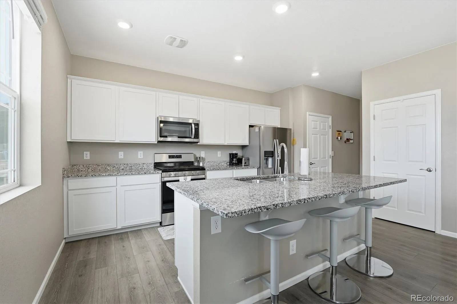 The kitchen is designed for both functionality and style, featuring a large island, granite countertops, a generous pantry, and an oversized storage room with a usable crawl space below. The current owners utilize this area as a playroom and additional storage, but the possibilities are endless!