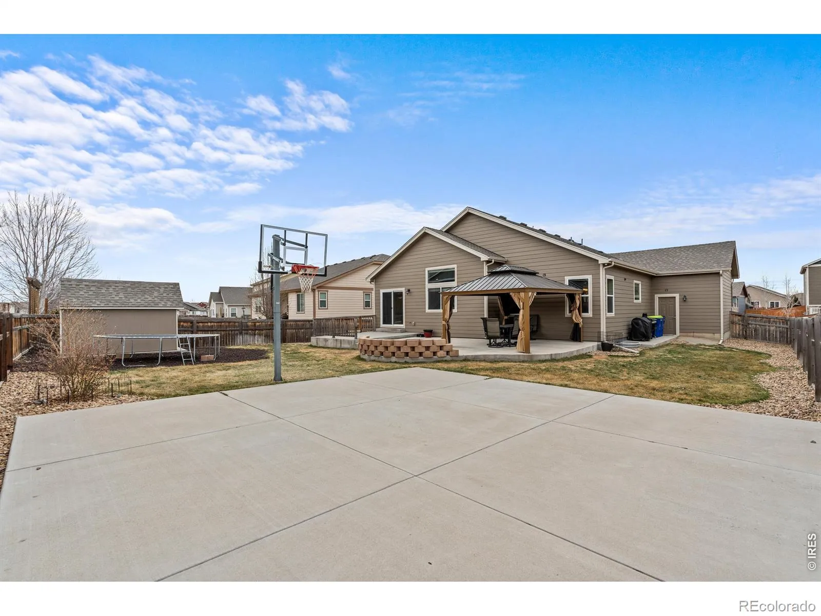 Amazing ranch home with the backyard of your entertaining dreams! Large patio, fire pit area, storage building and even a basketball court! This stunning ranch-style open + concept home offers the perfect blend of comfort, style, and functionality in Hidden Valley Farm neighborhoods. With 5 bedrooms, 3 bathrooms, and a spacious 3-car garage, this home provides plenty of room for family, guests, hobbies, and entertaining.Step inside and you’ll immediately appreciate the bright open floor plan, designed for easy living and effortless entertaining. The heart of the home is the inviting kitchen featuring granite countertops, stainless steel appliances, and generous cabinet space. The main-level primary suite offers a peaceful retreat with a private bathroom and walk-in closet, while additional bedrooms provide flexibility for family, guests, or a home office. Downstairs, the finished basement expands your living space with additional bedrooms, a bathroom, and large family room. Step outside to enjoy a beautifully designed and upgraded backyard with space to relax, entertain, and play. Features like a basketball court, fire pit area, and covered patio area create a backyard built for making memories. Located in the growing community of Severance, this home offers small-town charm with convenient access to nearby Fort Collins, Windsor, Loveland, Greeley and all the amenities Northern Colorado has to offer. Don’t miss the opportunity to make this beautiful home yours!