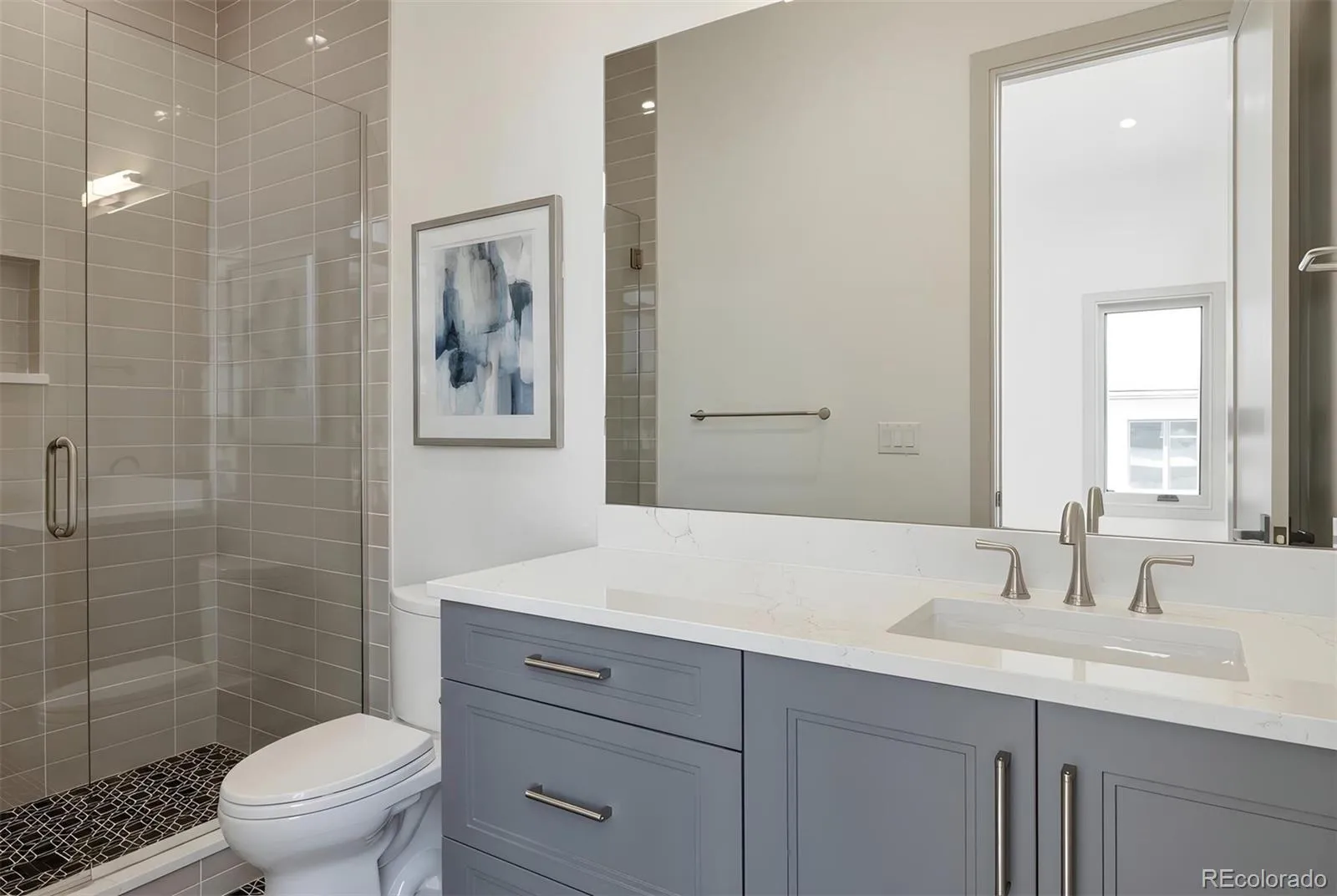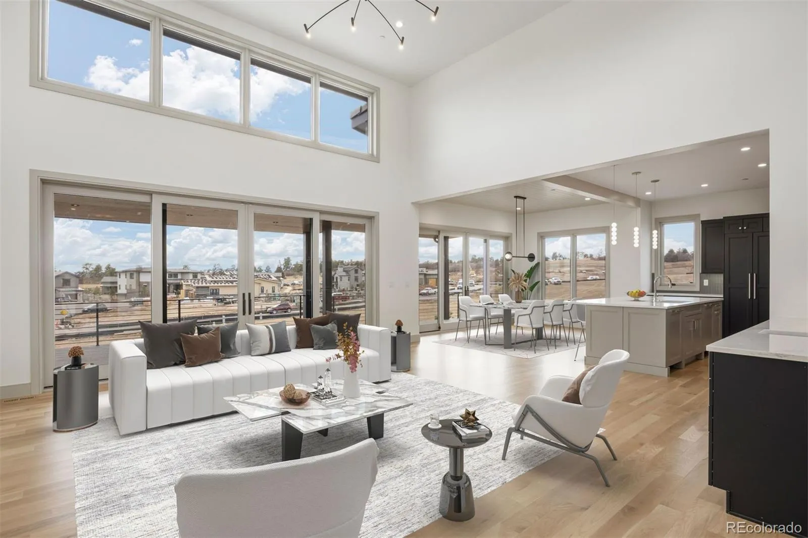 Welcome to the only MOVE-IN READY CUSTOM new construction home in the Village at Castle Pines! This exceptional mountain-view 4 bed | 6 bath residence is ready for its first owner and offers elevated Colorado living just steps away from Castle Pines Country Club. Hardwood floors extend throughout the main level, study, and staircase, complemented by level 5 smooth drywall, 8-foot solid-core doors, and custom lighting that creates a warm, gallery-like ambiance throughout the entire home. A focal point, the linear gas fireplace anchors the great room which opens through expansive sliding doors to a covered deck with tongue-and-groove ceiling and dry-below system, providing seamless indoor-outdoor gatherings to enjoy year-round Colorado living. The kitchen features quartz counters, a designer tile backsplash, Kitchen Showcase cabinets, and a premium Thermador appliance suite with double ovens, gas cooktop, dual dishwashers, microwave, and Zephyr beverage cooler. A generous island, sunny dining area, walk-in pantry, and versatile flex space support effortless living. A convenient main level primary suite offers a modern bathroom with a freestanding tub and oversized shower. Laundry access from both the foyer and primary suite enhances daily convenience. A useful secondary bedroom with en suite bathroom, office, chic powder room, and 3-car garage + golf cart bay with 220 outlet complete the main level. The walkout lower level offers a spacious family room, wet bar, workout room, two en-suite bedrooms, and a stylish powder room, all opening to a covered patio and landscaped grounds. Additional highlights include designer finishes and a professionally landscaped front and back yard with trees, grasses, sod, and in-ground sprinkler system – rarely found with new construction. Set within a premier gated community offering championship golf, scenic trails, and unmatched privacy, don’t miss this opportunity to own 1 of the LAST 2 new construction homes left in the Back Tees!
