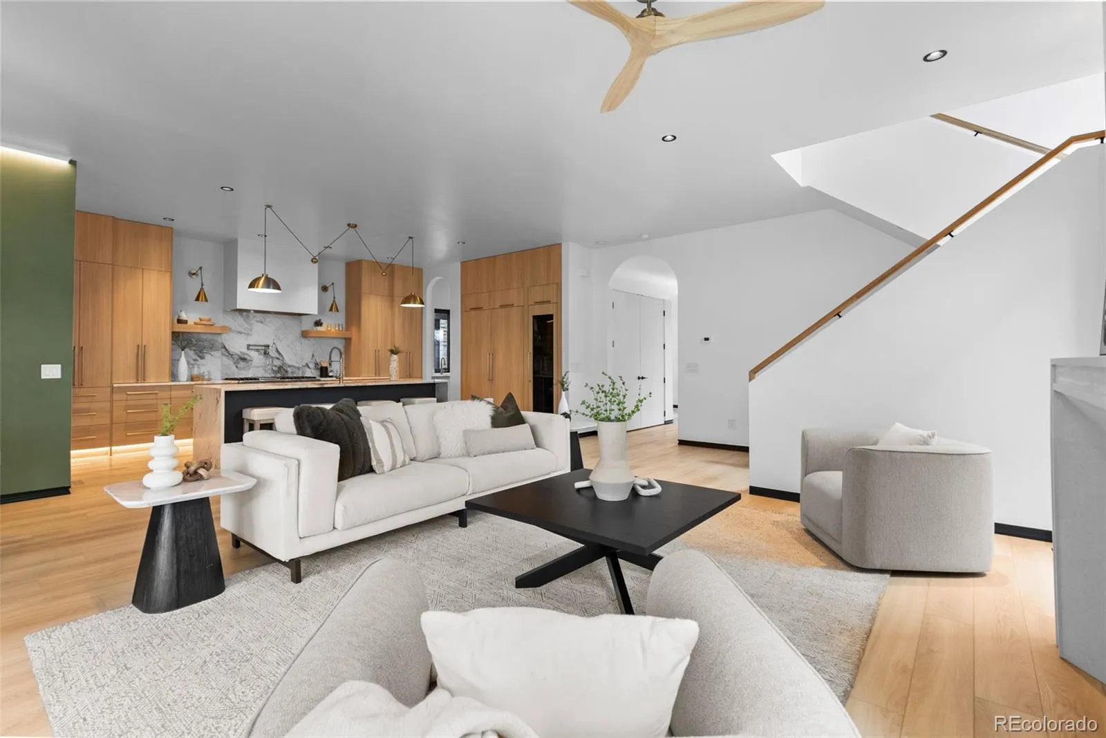 Where classic architecture meets modern artistry, this luxury custom home in Cory-Merrill embodies the perfect balance of tradition and innovation. Far surpassing the expectations of a typical spec build, this home showcases exceptional craftsmanship, curated materials, and a level of finish usually reserved for fully custom residences. An open, light-filled main level features lime-washed walls and an advanced lighting and control system that allows you to tailor ambiance and mood. Anchored by a professional-grade Viking range, the spectacular chef’s kitchen showcases Matarazzo quartzite waterfall countertops, custom European white oak cabinetry, and luxury paneled SKS appliances. A sliding quartz backsplash cleverly conceals storage for spices, knives, and essentials, blending artistry with function. A main-floor office with en suite bath offers flexibility for guests or remote work, while a beautifully designed mudroom adds everyday convenience with built-in storage and drop zone, robot-vac housing rough-in, and powder bath with a stunning backlit onyx vanity. Upstairs, the serene primary suite feels like a private spa with heated floors, large zero-entry shower, sculptural stone soaking tub framed by imported hand-painted tile, and an expansive walk-in closet. The finished basement extends the living space with a swanky full bar, fitness or bonus room, and generous recreation area ideal for a media lounge or game room. Flush-mount Fittes outlets, kerfed door jambs, and ambient baseboard lighting enhance the home’s clean lines and modern aesthetic. Together with the advanced lighting controls, these details create an interactive living experience where light and design adapt effortlessly to your lifestyle. Blending traditional warmth with contemporary minimalism, this home achieves a perfect balance of comfort, innovation, and timeless elegance.