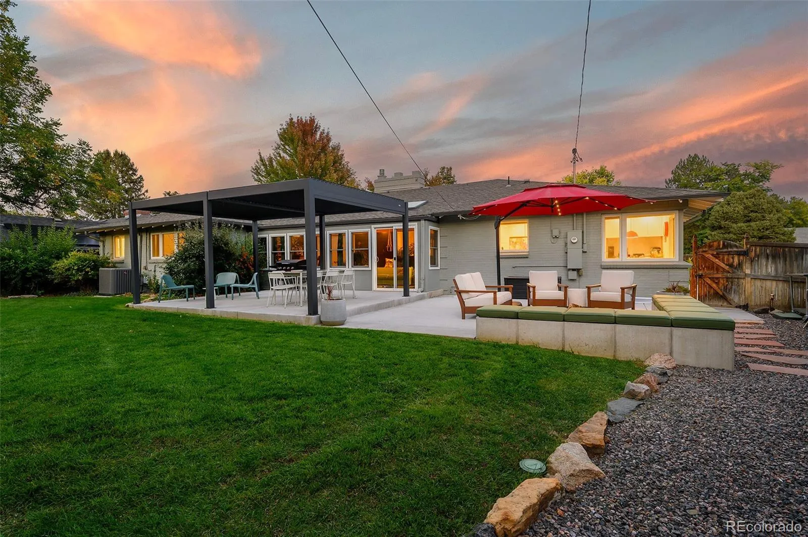 Beautifully updated and filled with natural light, this classic Southern Hills ranch blends timeless architecture with a refined mid-century modern influence. Set on a rare 12,000 SF lot in Wellshire just 2 blocks from Slavens K–8, the home offers a highly sought-after layout featuring four main-level bedrooms, a private office, and multiple living spaces — a configuration exceptionally difficult to find in this neighborhood. The main level opens to a spacious living room anchored by a fireplace wrapped in striking Heath Ceramics tile, flowing seamlessly into the generous dining area and a fully remodeled kitchen with a large island and sunny eat-in space. A private office or den showcases an original flagstone fireplace, while a bright rear flex space provides an additional gathering area currently enjoyed as a bar and entertaining lounge. A covered front porch, mature trees, and extensive landscaping enhance the home’s inviting presence. The bedroom wing begins with the primary suite featuring an updated ensuite bath finished in gorgeous terrazzo tile. Three secondary bedrooms follow, along with a spacious hall bath with double vanity and a convenient powder bath. A well-designed mudroom and laundry area enhance everyday functionality. Gorgeous hardwood floors extend throughout the main level, adding warmth and continuity. The finished lower level offers a large conforming bedroom with en suite bath, ideal for guests, extended stays, or additional living space. Significant system updates include newer A/C, sewer line, garage doors, driveway, and recessed lighting, offering peace of mind alongside style. Extensive landscaping upgrades, new hardscaping, and a pergola create a private backyard retreat ideal for relaxing or entertaining. A rare combination of layout, lot size, updates, and location defines this exceptional Southern Hills offering.