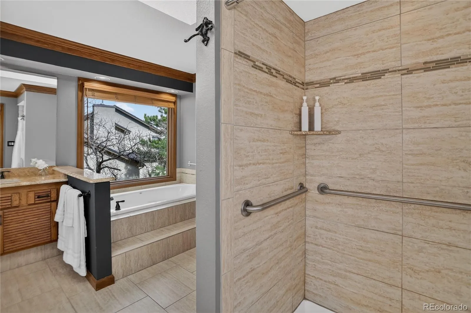 Tucked into the hillside of Broadmoor Bluffs, this inviting ranch-style home offers both serenity and space to gather. Framed by mature landscaping and positioned between city views and the towering beauty of Cheyenne Mountain, the setting is a true retreat. Inside, warm hardwood floors, vaulted ceilings with skylights, and a two-sided wood-burning fireplace create a welcoming atmosphere filled with natural light. The expansive kitchen features granite counters, dual ovens, a coffee station, new refrigerator, and a peninsula with barstool seating that are perfect for daily life or weekend entertaining. Walkouts from the great room and dining area lead to the back deck. Unwind in the private primary suite with dual walk-in closets, an updated 5-piece bath, and its own secluded deck. The main level includes also a front sitting room with built-ins, formal dining room, and laundry room. The lower level adds versatility with three additional bedrooms, including a spacious guest suite with private bath, and a bonus room ideal for fitness, recreation, or storage. In the backyard, enjoy the Colorado outdoors with a hot tub set into Trex decking and surrounded by nature. New paint inside and out, new carpet, new lighting, updated landscaping, a Class 5 roof, and security system speak to the care this home has received. With a peaceful setting and smart layout for everyday comfort and entertaining, this is a property that truly feels like home. Set on over a quarter acre of treed privacy in the Cheyenne Mountain D-12 school district.