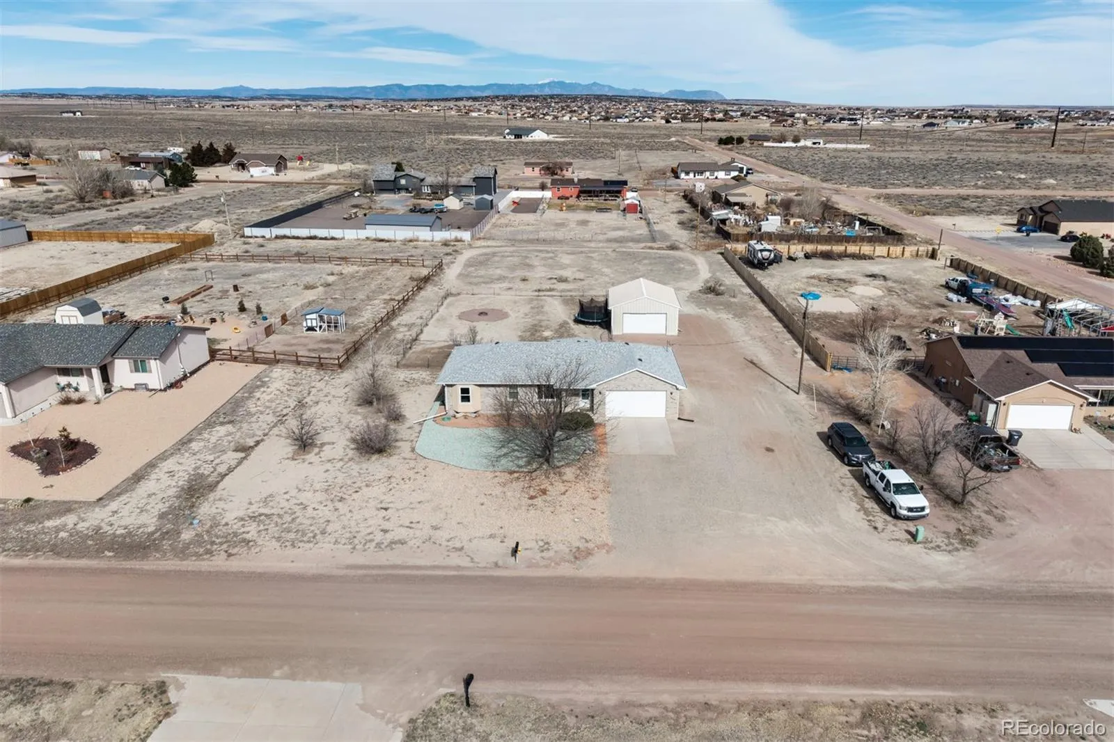 Spacious acerage living with mountain views! This 5-bedroom, 2-bathroom home in Pueblo West sits on 1.01 acres and offers a functional layout with plenty of room to live, work, and play. The main level features a comfortable primary suite with a private en-suite bathroom, along with two additional bedrooms and a full hallway bathroom. You’ll also appreciate the convenient main-level laundry and mud room, perfect for keeping everyday life organized. Downstairs, the finished basement adds two more bedrooms and includes rough-ins for a future bathroom, giving you the opportunity to expand and add value. A radon mitigation system is already installed for added peace of mind. Step outside to enjoy the fenced backyard and wide-open space, ideal for pets, hobbies, or outdoor gatherings. The impressive 24×30 shop provides abundant room for vehicles, equipment, or projects. Take in beautiful views of Pikes Peak while still being conveniently located near schools and quick access to I-25, making commuting and daily errands easy. With space, functionality, and stunning Colorado views, this property offers the perfect blend of rural feel and everyday convenience.