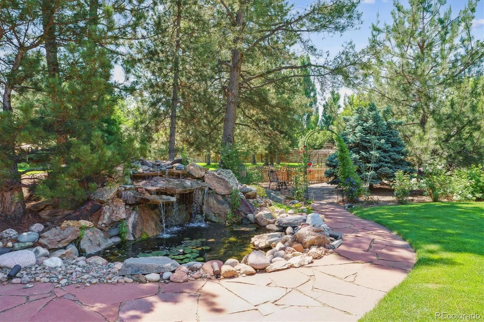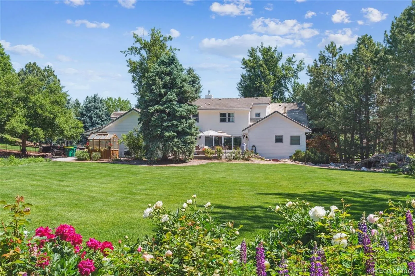 Set within an exclusive five home custom enclave “Cottonwood Meadows,” this distinguished 5-bedroom, 4.5 bath residence offers refined living on a serene 1.56-acre property with valuable irrigation water rights and greenhouse. Thoughtfully reimagined with extensive high-end updates, the home blends timeless craftsmanship with modern sophistication. The main level showcases an elegant primary suite featuring a beautifully remodeled spa inspired bath (no stairs required). The main level also has additional bedroom and full bath for multigenerational living. Rich plank flooring and a dramatic stacked stone fireplace anchor the main living spaces, creating a warm yet elevated atmosphere ideal for both everyday living and upscale entertaining. The main level also includes two home offices both with great lighting and one that overlooks the spacious back yard. A bonus walk out lower level extends the home’s livability, opening to a private patio framed by mature landscaping. At the rear of the property, a newly installed stamped concrete terrace and tranquil water feature with a Koi pond that creates a resort style outdoor retreat perfect for gatherings or quiet relaxation. From the moment you step into the backyard, you will feel the serenity of a true garden oasis. Eight raised garden beds, a temperature-regulated greenhouse, and a master-planned sprinkler system make this a dream environment for both seasoned and aspiring gardeners. Follow the winding garden pathway and discover a series of unique outdoor spaces, each planted with mature perennials that bloom in succession from spring through fall. The oversized three car attached garage, finished with a sleek epoxy floor, offers exceptional storage and workspace. Every detail reflects quality and care, resulting in a residence that feels both luxurious and inviting. This is a rare opportunity to own a meticulously updated home in a private, custom setting where comfort and natural beauty come together seamlessly.