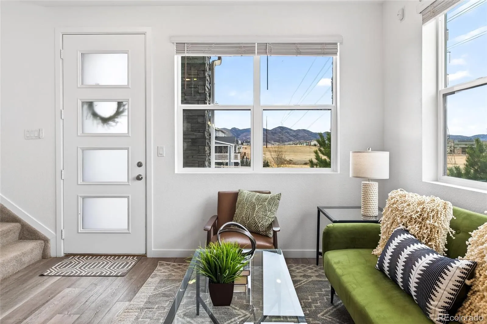 Welcome home to this beautiful, end-unit townhome showcasing 3 bed/2.5 bath, 1459 sq. ft., 2-car attached garage, gorgeous mountain views, in the highly coveted master-planned Sterling Ranch community. The main floor boasts a spacious kitchen with ample cabinet space, SS appliances and quartz countertop, the perfect powder bath, and an adjoining dining area that flows effortlessly into the spacious living room. Entertain with ease in the living room with inviting electric fireplace, and abundance of natural light, and sprawling laminate floors. Upstairs, the secondary bedroom has ample closet space and easy access to the full hallway bath. The third bedroom is oversized with a walk-in closet and has great light exposure. The sizeable primary bedroom showcases stunning mountain views, a walk-in closet and relaxing 5-piece ensuite bathroom complete with a soaker tub, quartz counters, dual sinks and stand-up shower. The laundry room is conventiently located on the second floor and includes a washer & dryer. Enjoy crisp Spring mornings with unobstructed views of the mountains and the wonderful neighborhood amenities including the pool, clubhouse with fitness center and coffee bar, nearby parks, playgrounds & 30 miles of trails. This home is centrally located with easy access to Highway 85, E-470, I-25 & 30 minutes outside of Denver and 50 minutes to DIA. Don’t miss your opportunity to own this incredible home, schedule your showing today!