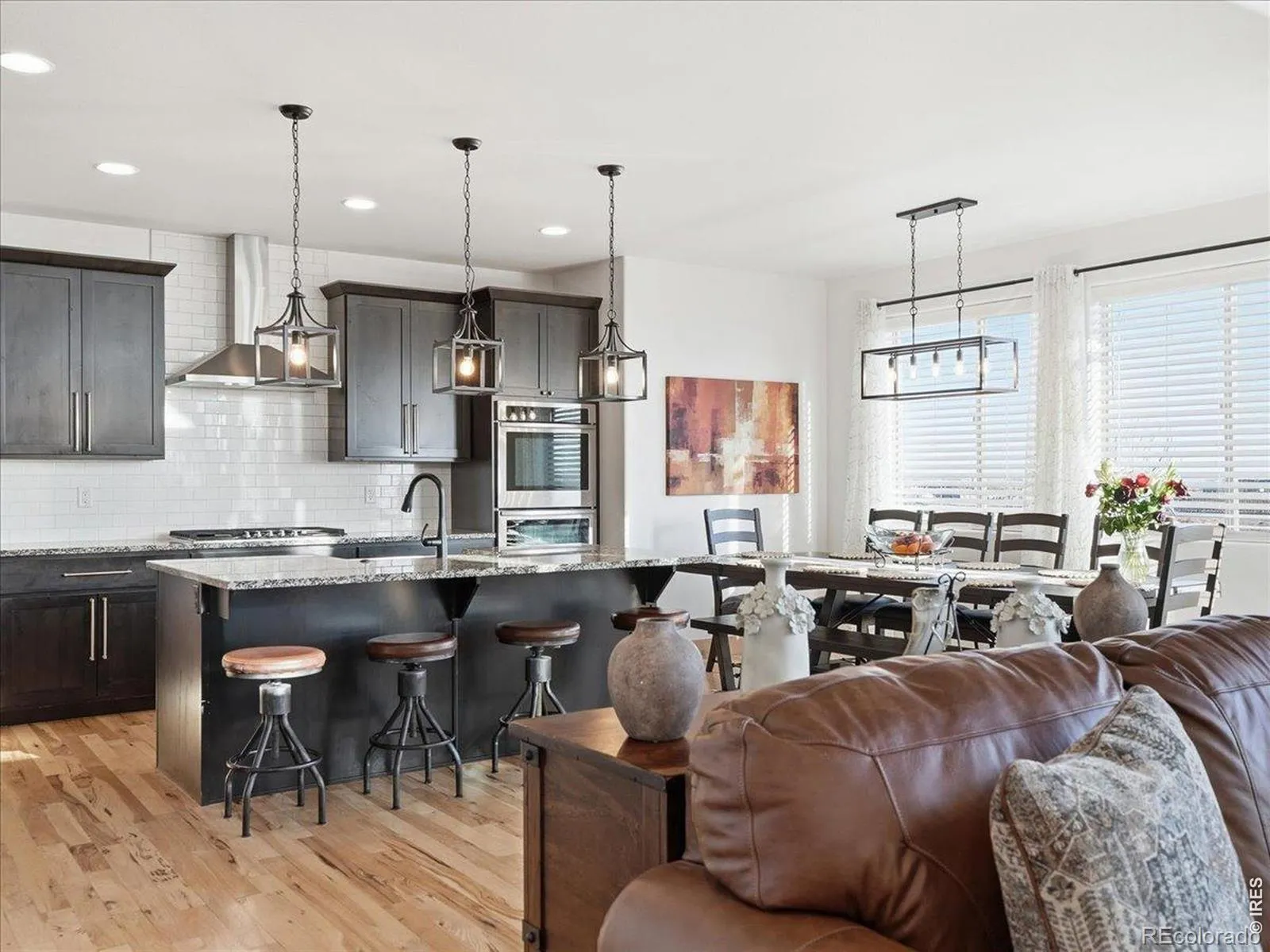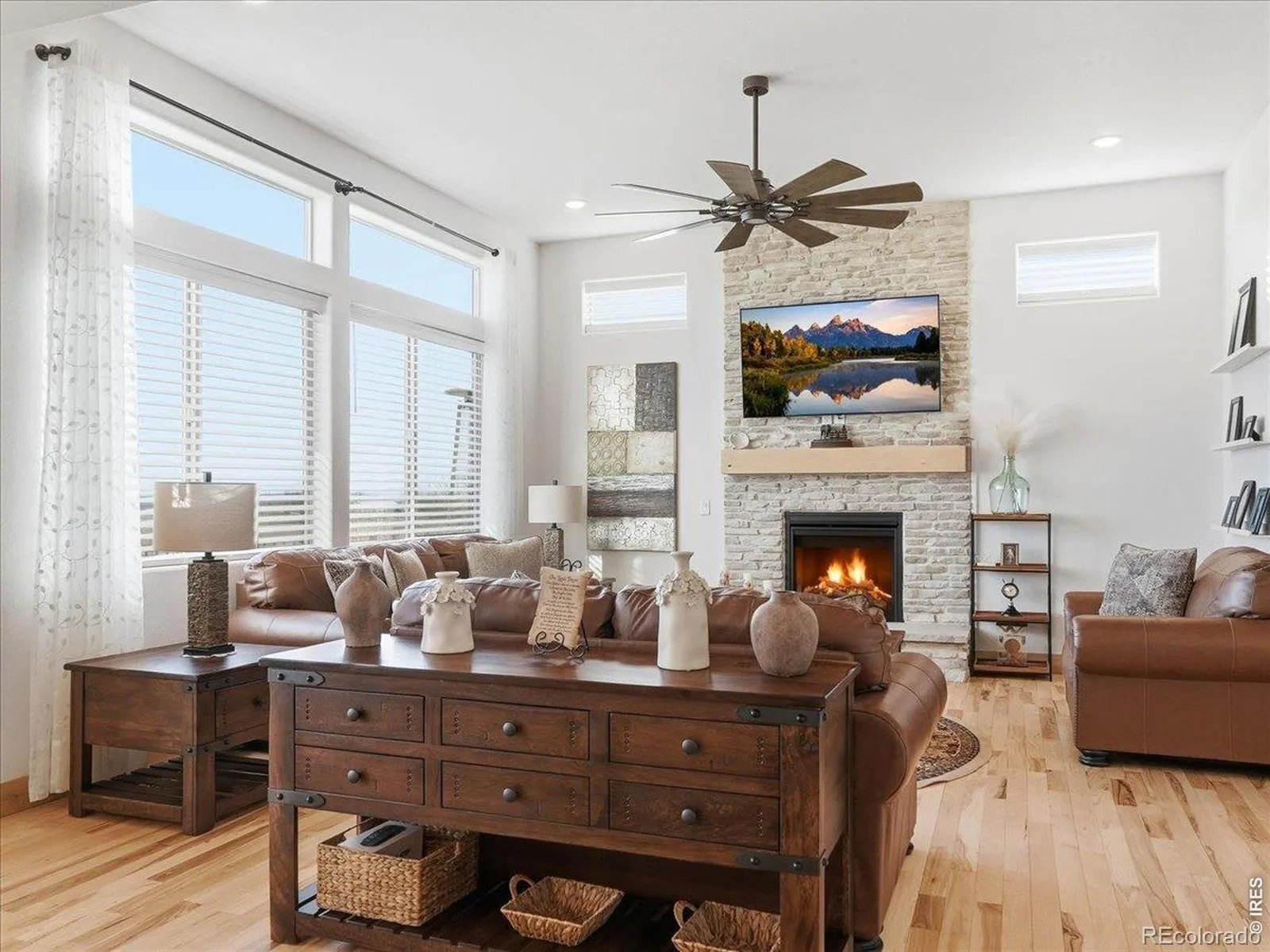 Welcome to this beautifully maintained, turn-key home in the heart of the Ridge at Harmony. This exceptional property offers panoramic mountain views and rare privacy with no rear neighbors. Enjoy breathtaking snow-capped mountain views by day and beautiful city lights at night from the large composite deck. inside to soaring ceilings, abundant natural light, rich hickory floors, and a stunning stone fireplace that anchors the main living space. The spacious kitchen is designed for both everyday living and entertaining, featuring stainless steel appliances, a gas cooktop, double ovens, designer lighting, and a large kitchen nook. Incredible storage throughout includes two generous pantries. The home has been meticulously cared for, with thoughtful upgrades including 8-foot solid core doors and quality finishes throughout. A main-level bedroom offers the perfect space for a home office or guest suite. Upstairs, the primary suite provides a relaxing retreat with a private bath and ample closet space. Additional bedrooms, a loft, and convenient upstairs laundry add flexibility and functionality.The finished garden-level basement also offers great space for entertaining or relaxing. A wet bar rough-in is already in place, with the option to add a second washer and dryer if desired. The large 3-car garage is deep enough to accommodate almost any full-size truck, providing excellent storage and versatility. Step outside to enjoy the peaceful backyard where you can take in the incredible Colorado views and private setting with no homes behind you-perfect for morning coffee, evening sunsets, or summer gatherings. Conveniently located near parks, trails, shopping, dining, and all that Windsor and Timnath have to offer, this home provides both tranquility and accessibility. With its thoughtful layout, stunning views, and sought-after location, this property is an exceptional opportunity to enjoy Northern Colorado living at its best.