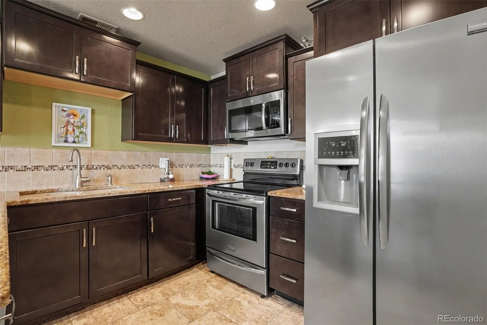 Charming 2-bedroom, 1-bath second-floor condo in the highly desirable Mountain Shadows neighborhood of Colorado Springs. Offering 1,141 sq ft, this light-filled home features vaulted ceilings, expansive windows, and a gas fireplace with floor-to-ceiling tile surround. The kitchen includes granite countertops, a breakfast bar, maple cabinetry, stainless steel appliances, tile backsplash, and an adjoining dining area. Step onto the private 8′ x 5′ balcony to enjoy fresh air and foothill views. The primary bedroom offers vaulted ceilings and a ceiling fan, while the second bedroom provides flexibility for guests or a home office. In-unit laundry and an attached 1-car garage add everyday convenience. Located just a one-minute walk to Ute Valley Park and minutes from Garden of the Gods, I-25, shopping, and top-rated schools. Community amenities include a pool, fitness center, clubhouse, and ample guest parking. This is an ideal home for first-time buyers, downsizers, or anyone seeking a low-maintenance lifestyle in one of Colorado Springs’ most desirable areas.