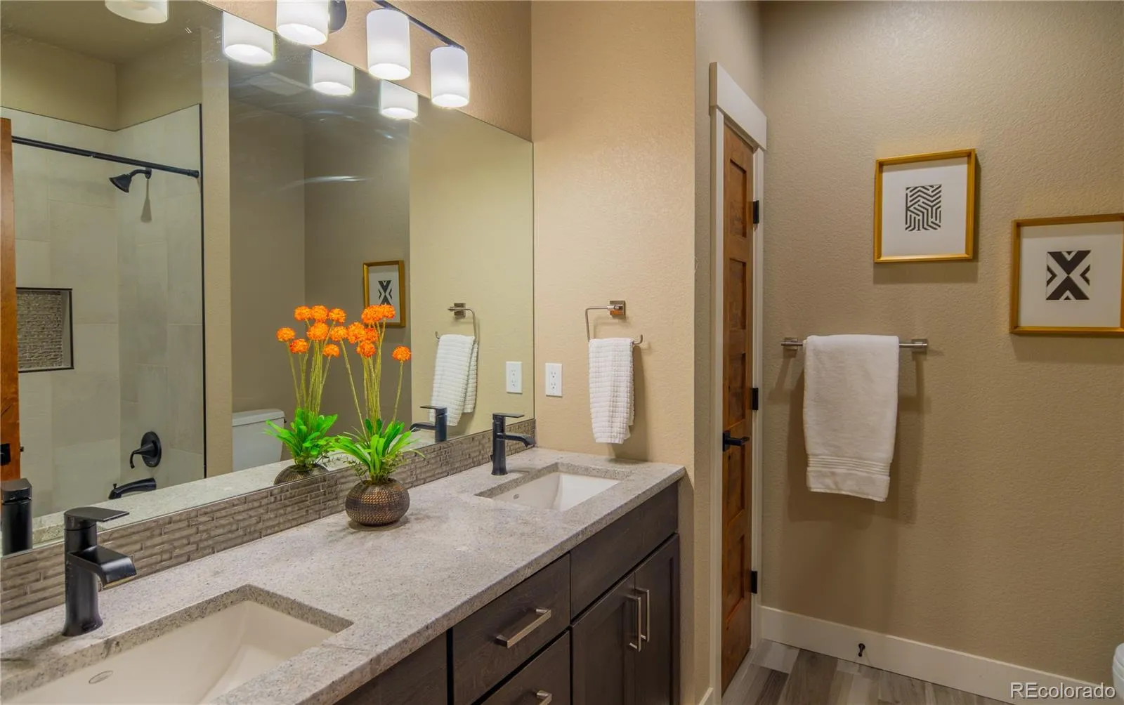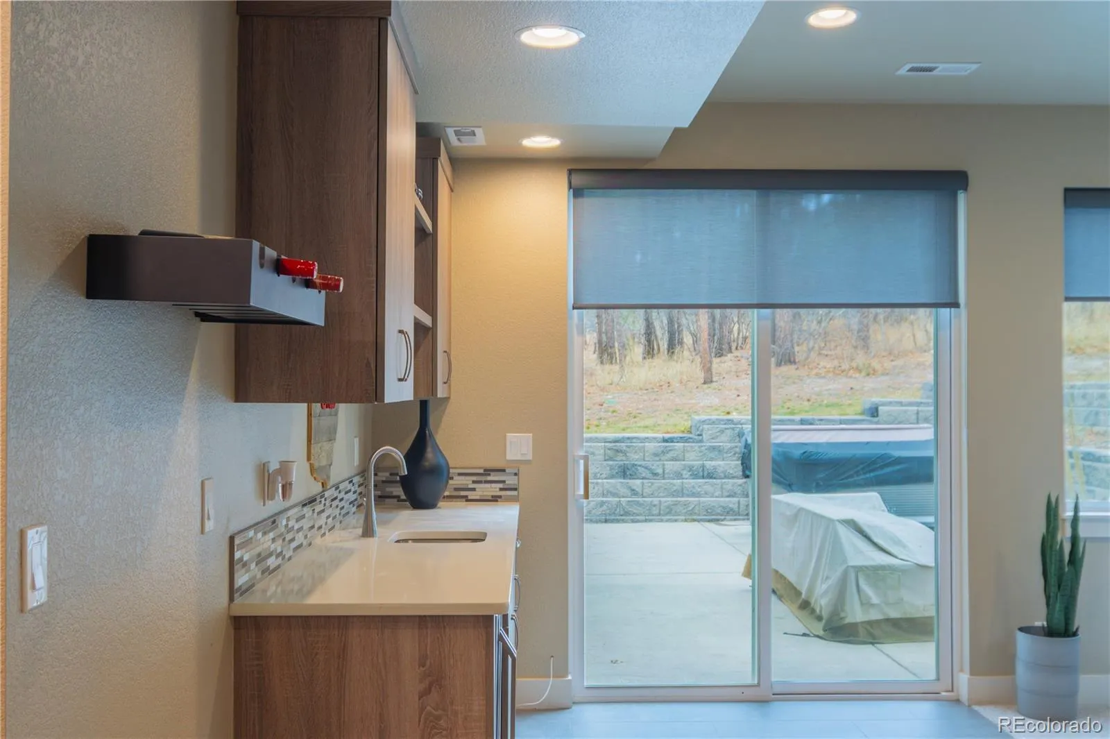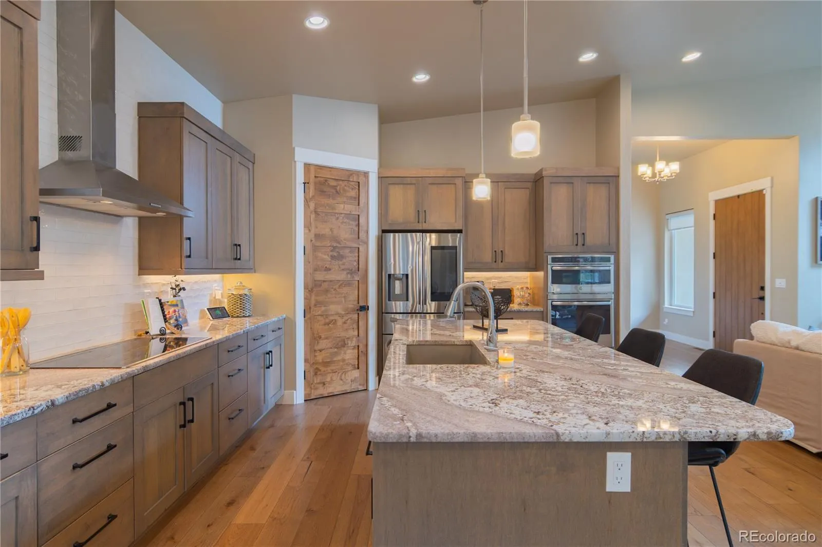 Spectacular custom Mountain Modern home nestled on over ¾ acre among the pines in the highly desirable Woodmoor area, built in 2020 with modern design and high-end finishes throughout. This stunning 5 bedroom, 4 bath home features an open-concept floor plan perfect for entertaining friends and family. The main living area is light and bright with soaring 10’ ceilings, a vaulted living room, and expansive windows that bring the outdoors in. Step directly from the living room onto the spacious deck, perfect for enjoying peaceful Colorado mornings and evenings. The chef’s kitchen is a true centerpiece, featuring a huge island, induction cooktop, and large walk-in pantry, providing both style and function for everyday living and entertaining. The luxurious main-level primary suite offers private deck access and a spa-like retreat with an expansive walk-in closet and a stunning spa shower. The main level also includes a convenient laundry room with sink and cabinetry. The walkout lower level is designed for relaxation and entertaining, complete with a wet bar and large living area, opening to a beautiful patio surrounded by the serenity of Colorado pines. The lower-level bedrooms are generously sized and all feature walk-in closets. Located just minutes from I-25 for an easy commute to Denver, and close to hiking trails, shopping, and restaurants, this exceptional home offers the perfect balance of modern comfort and mountain tranquility.