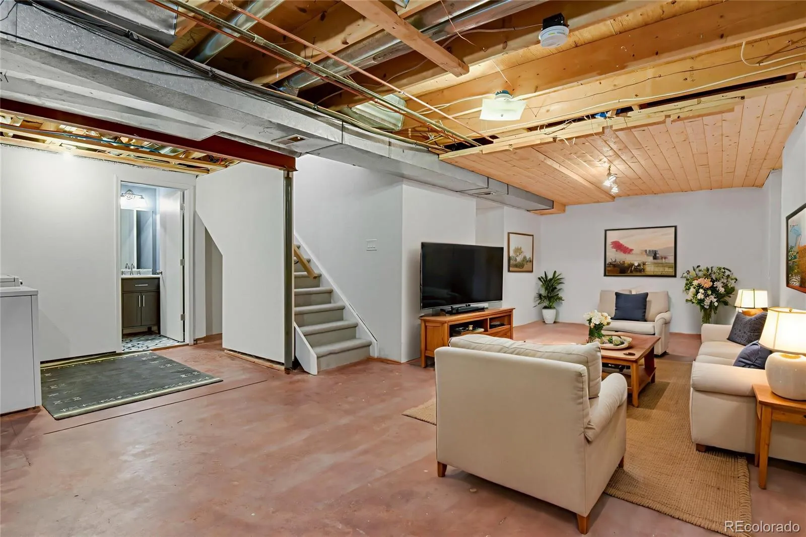 The fully finished basement doubles your living space and offers a sleek, industrial-chic aesthetic with professionally polished and stained concrete floors. It includes a spacious third bedroom with a newly installed egress window for safety and natural light. The basement also features a private electric 2+ person sauna—the ultimate luxury retreat, included with the home.