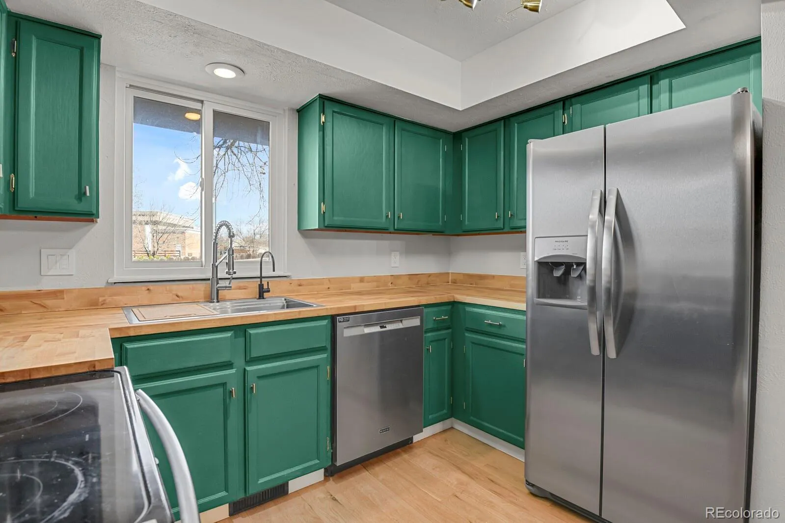 The main level features gorgeous 3/4-inch wide plank white oak hardwood floors and a fresh, modern paint palette. The open living area is anchored by a wood-burning fireplace with a newly installed hearth. The chef-inspired kitchen boasts refinished cabinetry with new hardware, beautiful butcher block countertops, and a suite of new appliances, including a dishwasher, microwave, and sink. For added convenience, a Reverse Osmosis water filtration system provides pristine drinking water right at the tap.