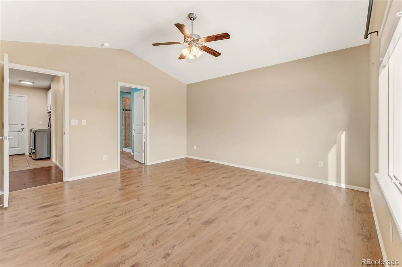 Beautiful granite counter height island and open floorplan make life and entertaining a breeze! Step out to your back patio with a retractable awning to enjoy those Colorado summer nights. Lovely, dark engineered wood floors throughout the main level. The primary retreat has luxury plan vinyl flooring, vaulted ceilings and adjoining 5-piece bathroom with soaking tub, dual sinks, granite countertops and a wonderful walk-in closet. The basements main focus is a huge recreational area, 2 additional bedrooms, a full bathroom and a large storage area. The entire home exterior was painted 3 years ago, roof was replaced in 2024, and hot water heater was replaced in 2024. Great location close to many amenities. This home is move-in ready! Come see for yourself.