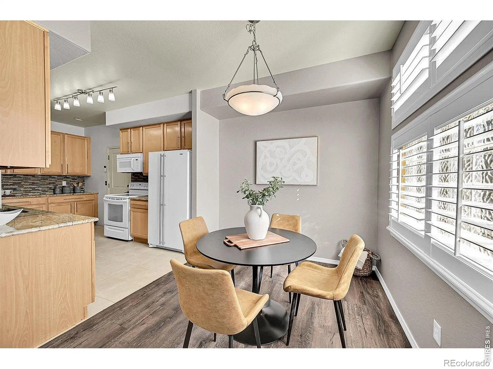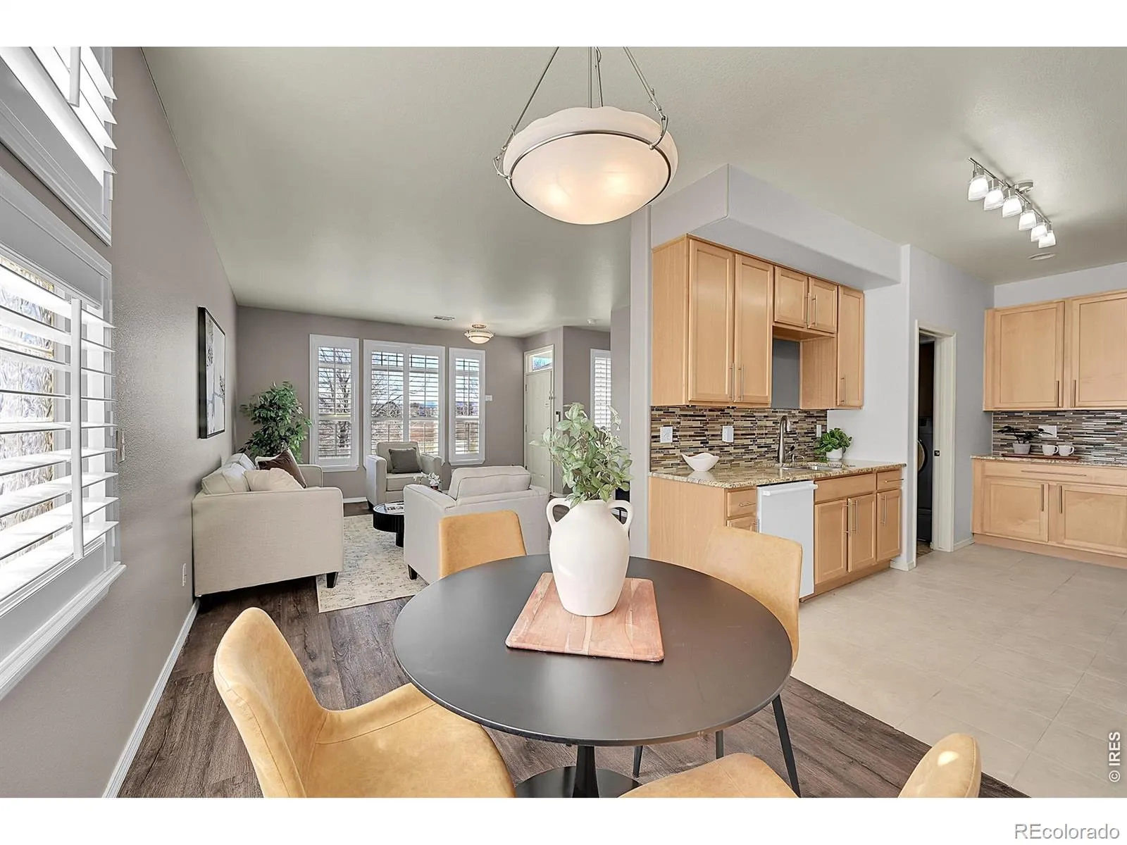Imagine waking up everyday to a SW facing open space view, listen to birds chirping and recreate right out your front door. This is your opportunity to live in a quiet community ideally located between Boulder and Denver – shorten your commute. Discover the perfect blend of comfort, style and tranquility. Beautifully maintained 2 bedroom plus den/3rd bedroom END UNIT townhome. Ideally positioned at the back of this tight knit community providing privacy and nature. Step inside to a clean and fresh interior with LVT flooring, classic maple kitchen cabinets, along with top of the line appliances. Upstairs features 2 bedrooms, 2 bathrooms and a flex room that functions as an office or non-conforming bedroom. Plantation shutters throughout add to the upscale nature of this home. Major systems updated and well maintained.
