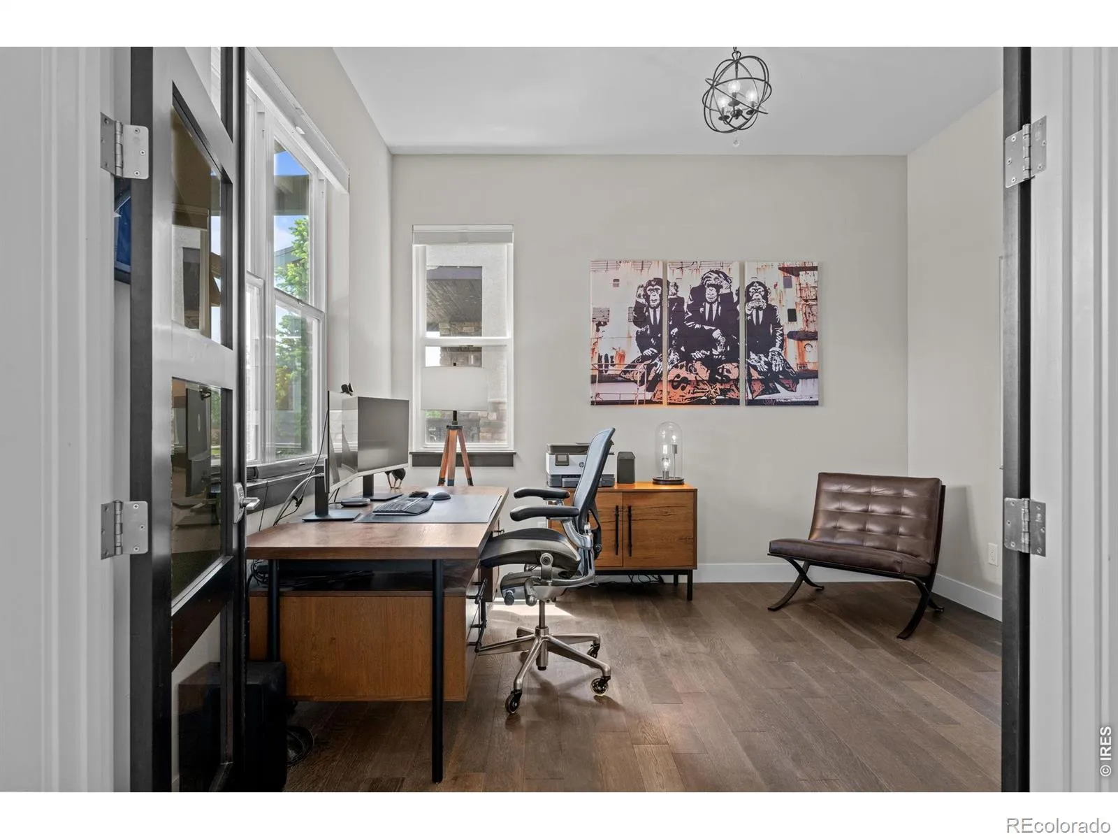Move right into this beautifully appointed, luxurious lock-and-leave home in Northfield Commons. From the moment you enter, you’re welcomed by an open floor plan, soaring 10-foot ceilings, abundant natural light, and beautiful wood floors that create an airy, inviting feel throughout the main level. A private office with French doors captures the morning light, offering an ideal work-from-home retreat. At the heart of the home is a chef’s kitchen designed to impress, featuring high-end finishes, an oversized island, and exceptional functionality. Just off the kitchen, the generously sized living room is anchored by a custom stone surround gas fireplace, creating a warm and inviting place to gather. The spacious dining area opens to the rear patio, complete with a new hot tub and makes indoor-outdoor living and summer entertaining feel seamless. Upstairs, the private primary suite offers a peaceful retreat with its own balcony, vaulted ceilings, an enormous walk-in closet, and a luxurious five-piece bath. A cozy sitting area, full bathroom, convenient laundry room, and two additional bedrooms complete the upper level. The finished basement expands the living space with 9-foot ceilings, a home theater including a HD projector with built-in 7.1 surround sound, wet bar, rec room, and a fourth bedroom, ideal for guests, hobbies, or additional workspace. Set in a low-traffic neighborhood near three parks, trails, and open space, this home combines thoughtful design, quality finishes, and easy living in one exceptional package.