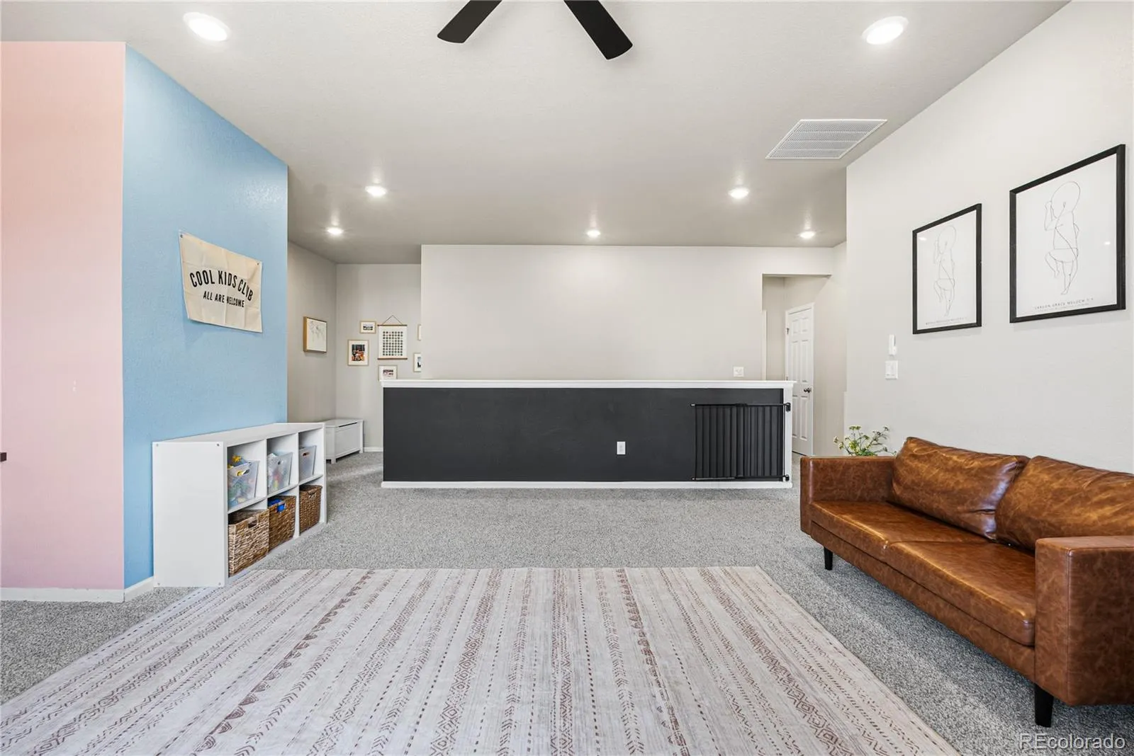 Additional upgrades include ceiling fans, Murphy bed in the main level bedroom, custom mudroom finishes, upgraded lighting and fixtures throughout, additional outlets, garage hanging storage, iron window well covers, and upgraded basement lighting with a synthetic hockey rink.