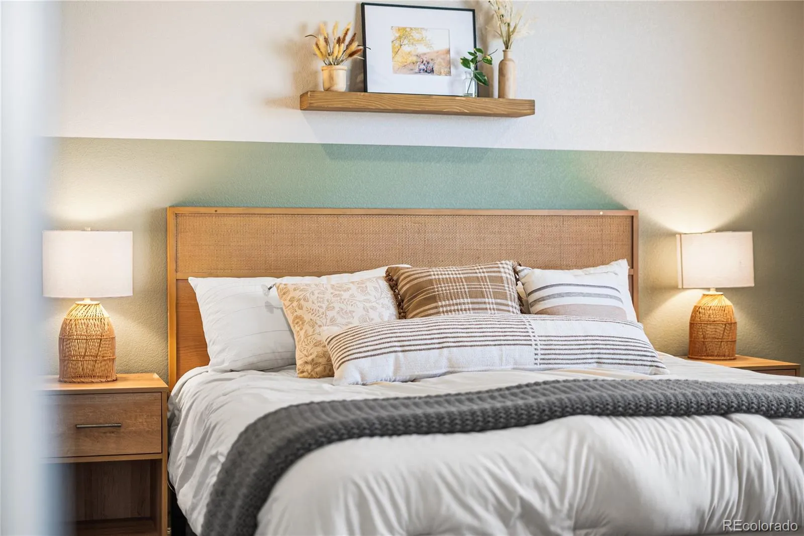 Upstairs you’ll find four additional bedrooms including the spacious primary suite with ensuite bath, a secondary bedroom with its own private ensuite, and two more bedrooms and a full bath. The laundry room is conveniently located upstairs with included washer and dryer. A versatile loft features floor-to-ceiling bookcases, built-in desk, floating shelves, and a striking hand-painted stencil accent wall.
