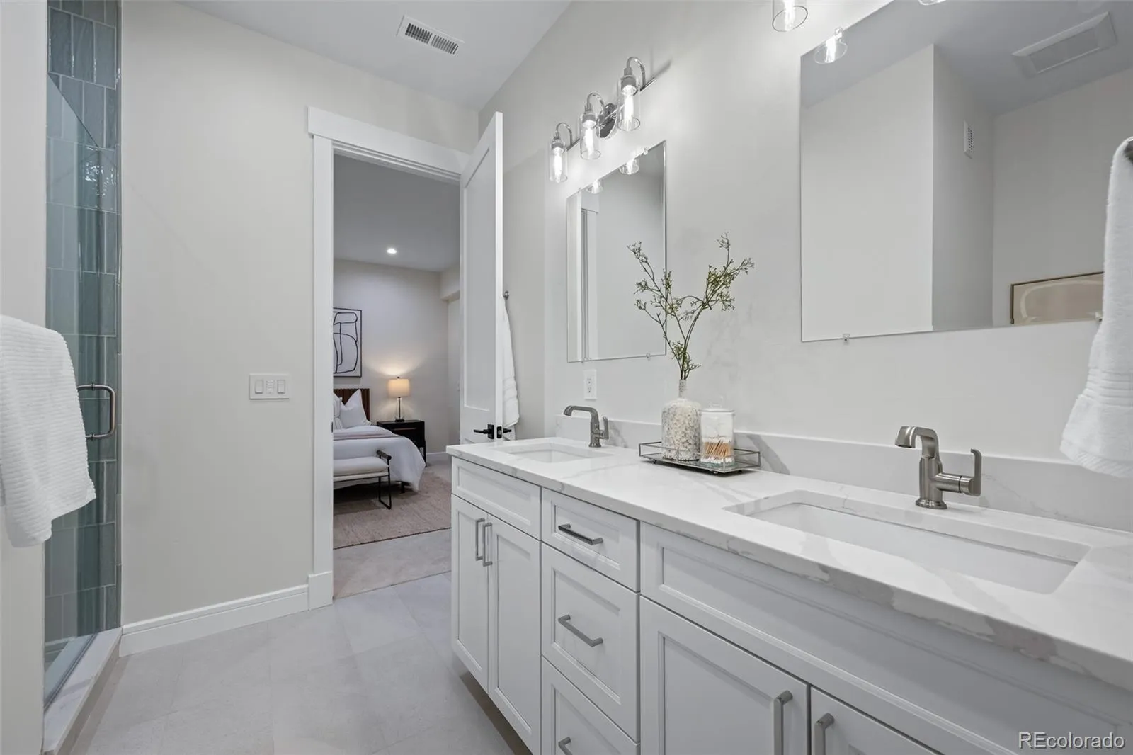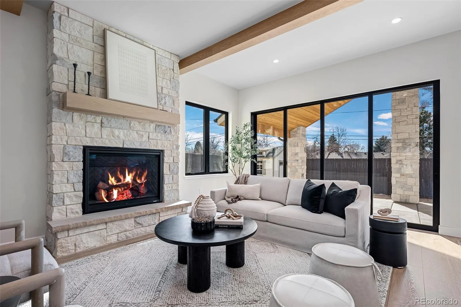 Designed with details most homes overlook, this exceptional University Hills custom home blends stunning architecture, thoughtful everyday functionality, high-performance systems, and spaces built for entertaining. Abundant natural light fills the entry, while expansive 12’ multi-slide doors open the living space to a covered patio with built-in grill for seamless indoor-outdoor living. The kitchen is designed for gathering with a large island, open layout to the living room, and professional-grade Thermador stainless steel appliances. Entertain effortlessly with a main-level wet bar in the living room, a butler’s pantry serving the formal dining room, and a gorgeous built-in wine niche with a 70-bottle refrigerator. The basement great room with 9′ ceilings provides an additional gathering space with its own convenient wet bar. Every bedroom is a private suite with an en-suite bath and walk-in closet. A main-floor office can also serve as a fifth conforming bedroom, supported by a nearby 3/4 bath. Standout features include a heated and insulated 4-car garage, high-efficiency windows, spray foam insulation, dual furnaces with HRV fresh-air ventilation and HEPA filtration, hot water recirculation for near-instant hot water, and a Class IV impact-resistant roof. Fully landscaped grounds with irrigation, an 8’ privacy fence, and a powered storage shed complete the outdoor retreat. Ideally located on one of the hottest blocks in University Hills, walking distance to Bradley International School, grocery stores, retail shopping, restaurants, and everyday amenities. This home must be experienced in person to fully appreciate the thoughtful details throughout.