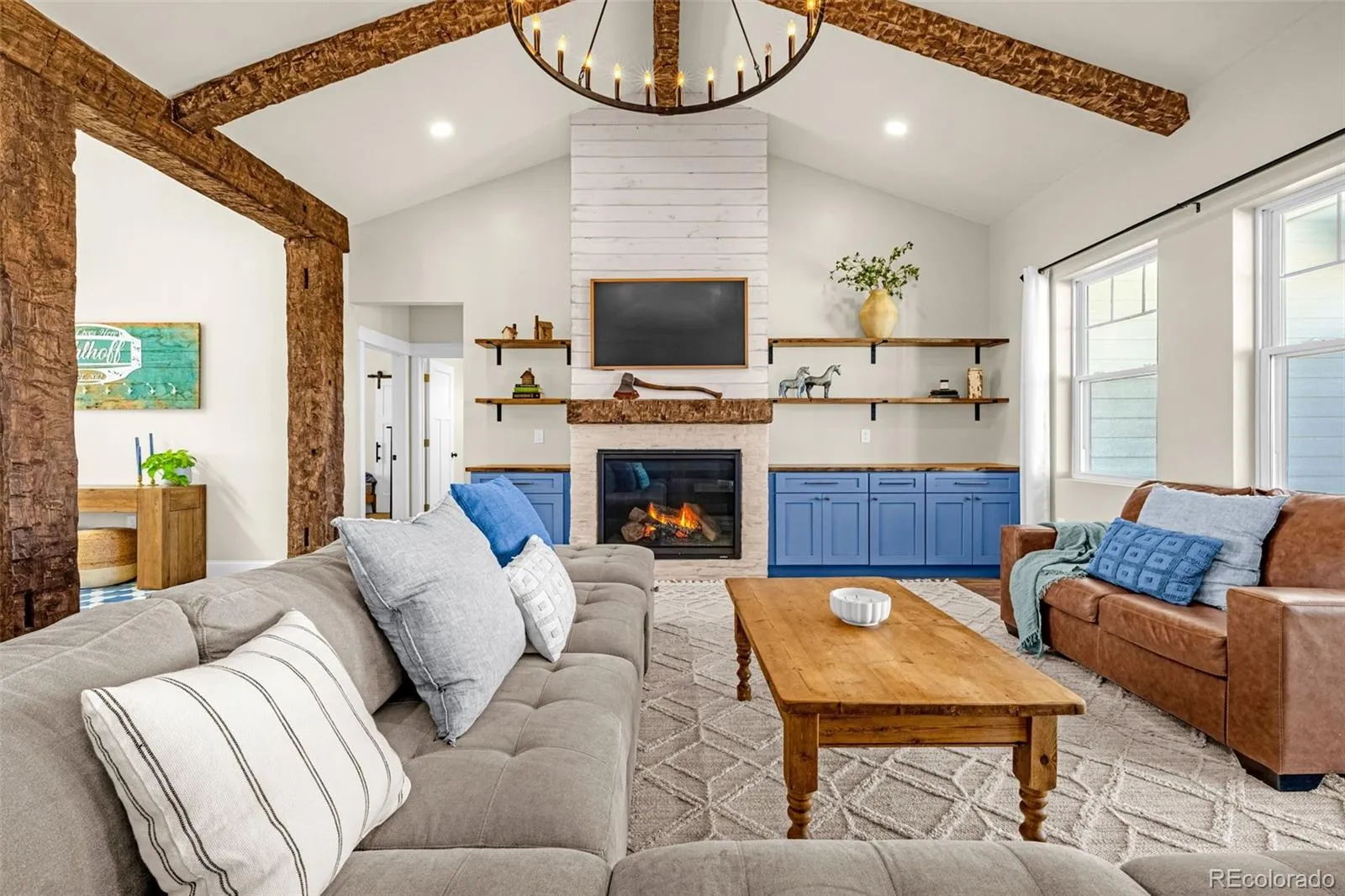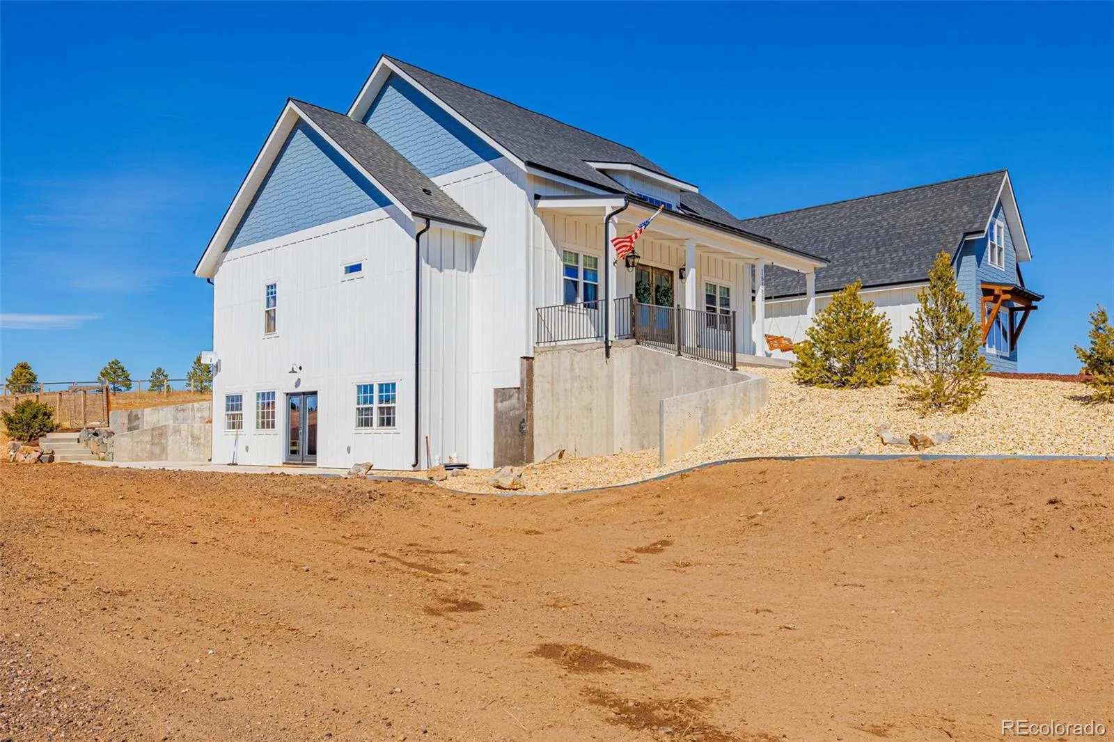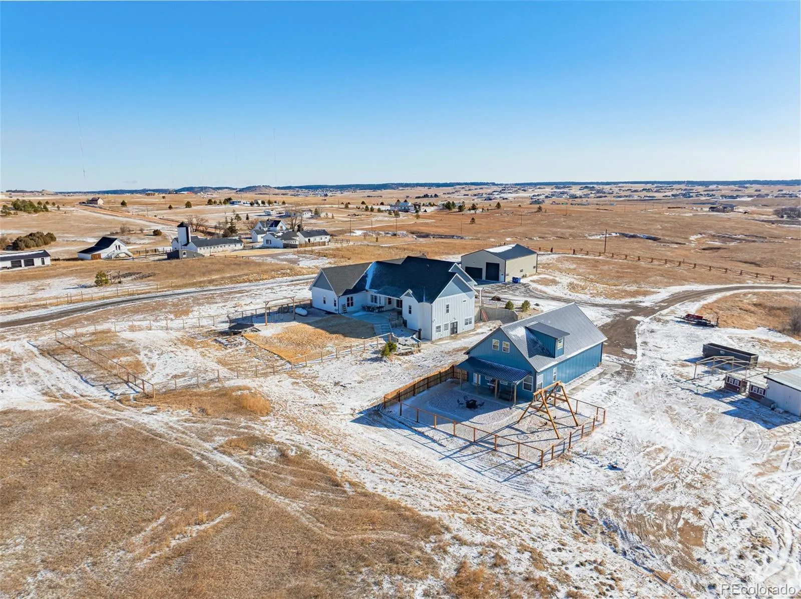 Dreaming of a Colorado homestead with breathtaking Pikes Peak views, acreage, and built-in income potential? This exceptional 5.49-acre estate features a beautifully crafted custom farmhouse, a barn-dominium guest home, and multiple living opportunities just minutes from Monument and Colorado Springs. The stunning 6-bedroom, 5-bath main residence showcases exceptional craftsmanship and thoughtful design throughout, including exposed wood beams, a custom tile entry, LVP flooring throughout the main living areas, and a gas fireplace anchoring the open living space. A dedicated office or homeschool room sits just off the living area. The chef’s kitchen includes a farmhouse sink, beverage refrigerator, microwave and wall-oven combo, additional oven and range, dishwasher, and a spacious walk-in pantry perfect for storage and organization. Elegant lighting fixtures, custom curtains, and designer window coverings complement the architectural details, creating a cohesive modern farmhouse aesthetic throughout the home. The main level offers three secondary bedrooms with walk-in closets and a full bath with double vanities, while the private primary suite features a soaking tub, sauna, heated floors, and walk-in closet. Above the garage is a large bonus room with full bath ideal for guests, a playroom, or media space. The finished basement adds two bedrooms, a full bath with double vanities, two office spaces, and a large living area perfect for a gym, media room, or second family room. The property also includes a 3-bedroom, 2-bath barn-dominium currently operating as a successful Airbnb. A large 40 x 40 heated workshop includes an additional 2-bedroom, 1-bath apartment with radiant heat, tankless water heater, washer and dryer, and custom woodwork. Outdoor living offers wide open space, sweeping Front Range and Pikes Peak views, fenced yard, and chicken coop ready for homestead living. Additional highlights include a Class 4 impact-resistant roof and oversized 3-car garage.