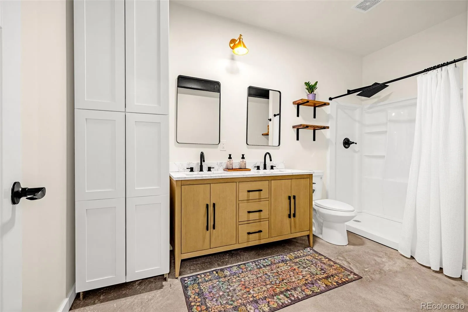 Welcome to a breathtaking 5.49-acre Colorado homestead featuring three exceptional homes, sweeping Pikes Peak views, and built-in income potential.The stunning 6-bedroom, 5-bath main residence showcases exceptional craftsmanship and thoughtful design throughout, including exposed wood beams, a custom tile entry, LVP flooring throughout the main living areas, and a gas fireplace anchoring the open living space. A dedicated office or homeschool room sits just off the living area. The chef’s kitchen includes a farmhouse sink, beverage refrigerator, microwave and wall-oven combo, additional oven and range, dishwasher, and a spacious walk-in pantry perfect for storage and organization. Elegant lighting fixtures, custom curtains, and designer window coverings complement the architectural details, creating a cohesive modern farmhouse aesthetic throughout the home. The main level offers three secondary bedrooms with walk-in closets and a full bath with double vanities, while the private primary suite features a soaking tub, sauna, heated floors, and walk-in closet. Above the garage is a large bonus room with full bath ideal for guests, a playroom, or media space. The finished basement adds two bedrooms, a full bath with double vanities, two office spaces, and a large living area perfect for a gym, media room, or second family room. The property also includes a 3-bedroom, 2-bath barn-dominium currently operating as a successful Airbnb. A large 40 x 40 heated workshop includes an additional 2-bedroom, 1-bath apartment with radiant heat, tankless water heater, washer and dryer, and custom woodwork. Outdoor living offers wide open space, sweeping Front Range and Pikes Peak views, fenced yard, and chicken coop ready for homestead living. Additional highlights include a Class 4 impact-resistant roof and oversized 3-car garage.