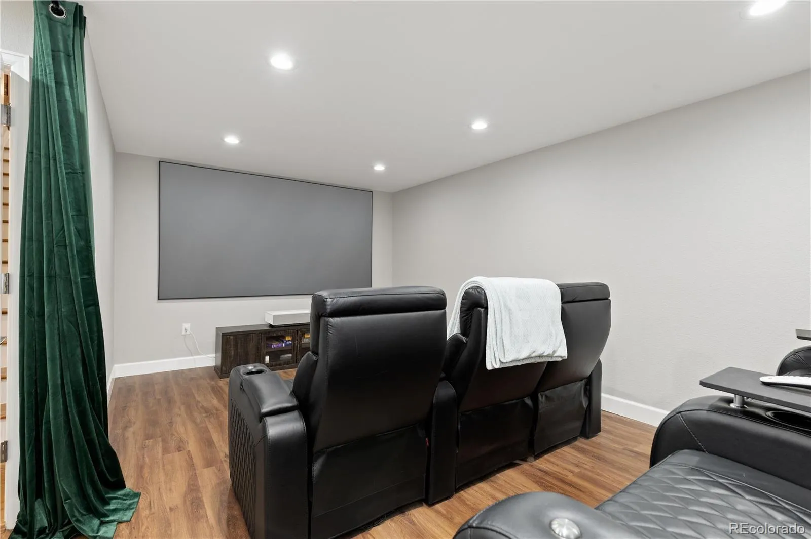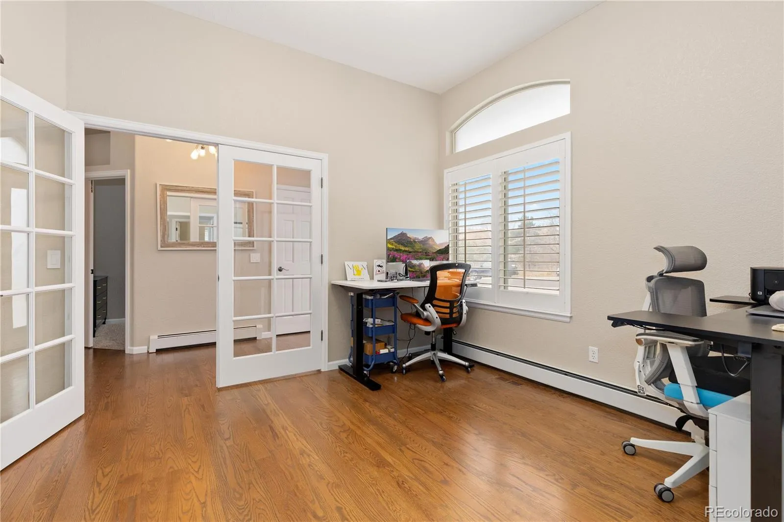 Located in the highly desirable Applewood community in Golden, this gorgeous ranch home offers a rare combination of space, comfort, and an unbeatable location. Tucked away on a quiet cul-de-sac with little traffic, the home enjoys a peaceful setting in a welcoming neighborhood with three parks within walking distance and a nearby elementary school. Inside, the light-filled open floor plan creates an inviting atmosphere with a crisp neutral color palette throughout. The main level features beautiful wood floors, vaulted ceilings, and plantation shutters, while the spacious living room is anchored by a cozy fireplace. The dining area flows seamlessly into the fabulous chef’s kitchen, complete with abundant white cabinetry, sleek granite countertops, a large eat-in center island, and an Instaview stainless refrigerator—perfect for everyday living and entertaining. The main level includes three comfortable bedrooms along with a dedicated home office featuring dual French doors, ideal for remote work or study. The dining room opens directly to the private backyard, where an expansive covered and uncovered patio, along with a gazebo, creates the perfect space for relaxing or entertaining outdoors. A large laundry room features a utility sink and generous storage. The newly finished basement expands the home’s versatility with its own private entrance. The family room features a wet bar with air fryer and conventional oven, ideal for a multi-generational suite or guest retreat. Additional lower-level highlights include a theater room, home gym, two bedrooms (one with a private bath), and plenty of flexible living space. Recent updates include a new AC unit (August 2021), concrete patio and gazebo (June 2023), and boiler system upgrades (January 2025). With quick access to two major highways, commuting and travel throughout the Denver metro area is easy. This move-in-ready Applewood gem truly offers the perfect blend of location, comfort, and lifestyle.