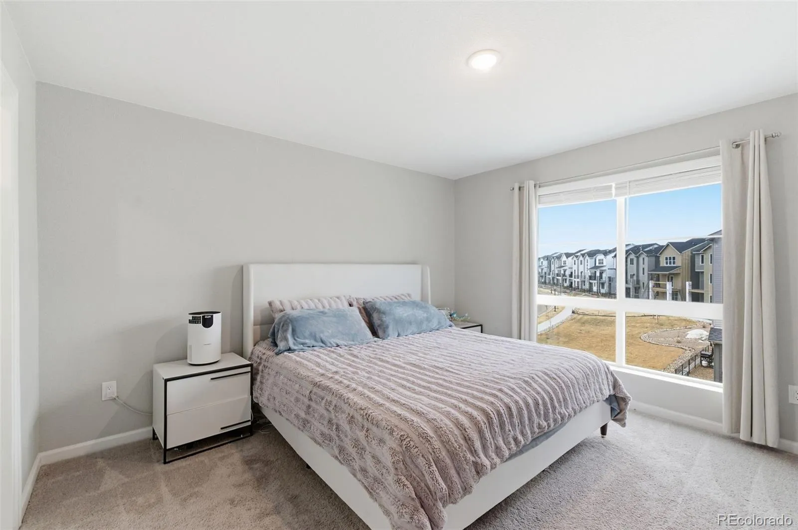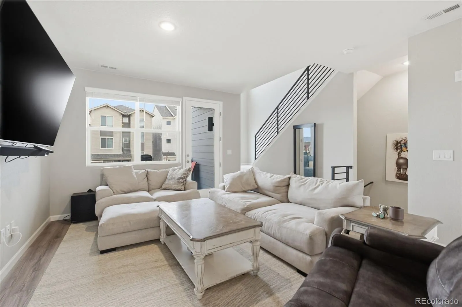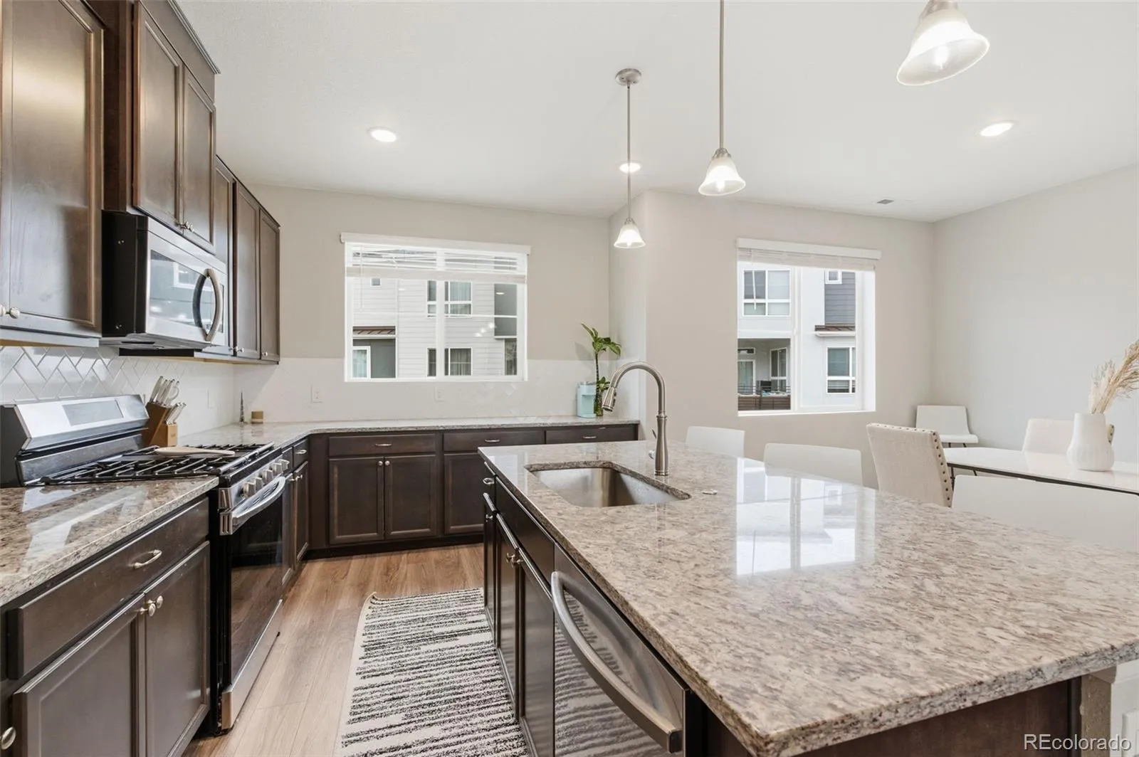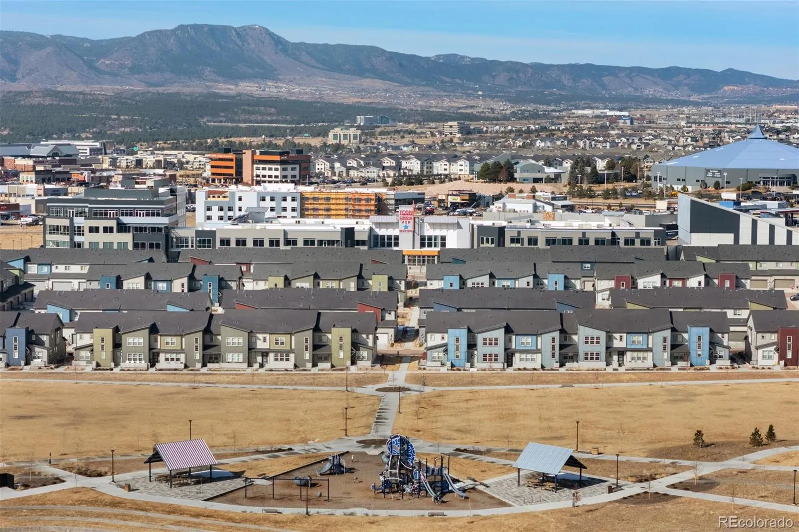 Located in the very popular Commons at Victory Ridge neighborhood is this very nice 4 bed, 4 bath home with an adjoining 2 car garage! Home has central air! The living room enjoys LVT flooring, a vaulted ceiling, recessed lighting and door access to a private balcony! From the balcony you can see the park which is located across the street from his neighbor’s home. The beautiful LVT flooring continuous into the dining area and the kitchen. The Kitchen enjoys pendant lights over the spacious center island and a counter bar! You’ll find granite counters throughout home! Kitchen also has recessed lights, a pantry, and all stainless appliances (gas range) are included along with the washer/dryer! A spacious dining area is adjacent to the kitchen. An attractive wrought iron railing takes you to the upstairs where you’ll find 3 bedrooms, 2 bathrooms and primary bedroom. All of the upstairs is carpeted except the bathrooms, kitchen, dining area and laundry. The primary bathroom has an adjoining double vanity bath and walk-in closet. On the lowest level you’ll find the 4th carpeted bedroom, the 4th bathroom and hall closet. Access to the adjoining 2 car garage is also on this level. Home is located very near to the ICON Theatre, and there are several upscale and fast-food restaurants nearby. Scheels, banks, New Life Church and other entities are nearby! You’ll also have easy access to I-25 and Powers Blvd. There have been no pets there. You’re going to love this home!