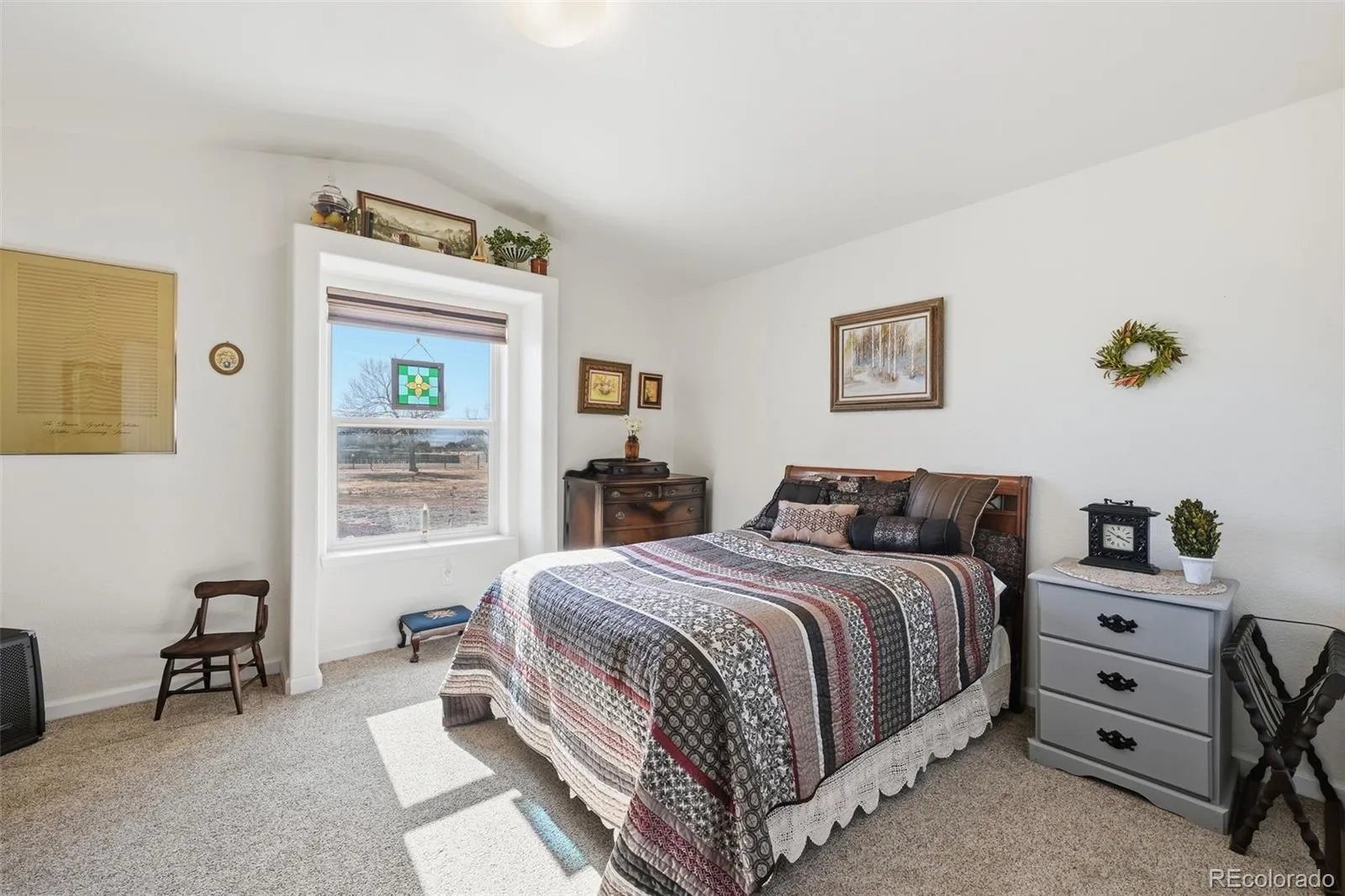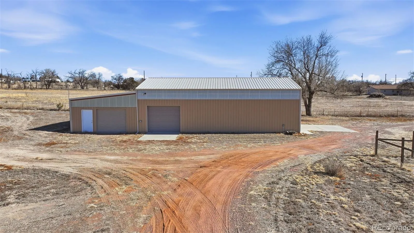 Quality custom home on over 4.4 acres offering peaceful rural living and exceptional privacy, perfectly positioned back from the road. This inviting 4-bedroom, 2-bath home features over 1,950 square feet of thoughtfully designed living space with quality upgrades throughout. A bright, formal entry welcomes you into the expanded living room, highlighted by a beautiful gas-log fireplace, vaulted ceilings, and large windows that fill the space with natural light. The oversized custom kitchen is designed for both function and style, featuring a large prep and seating island, quality custom cabinetry, and a spacious pantry. The open dining area easily accommodates large tables, making it ideal for big gatherings and entertaining. A desirable split-bedroom floor plan offers a spacious primary suite complete with a luxurious 5-piece bath, including large, inviting soaking tub, beautifully tiled walk-in shower, double vanity, and an impressive walk-in closet. The three additional bedrooms feature vaulted ceilings, large closets, and flexibility for those that work from home to have a private office or work space. Car and hobby enthusiasts will appreciate the attached 29 x 29 three-car garage, plus a detached 30 x 48 shop with full concrete floor, 11½-foot main overhead door, and additional side-entry overhead door. Added to the back of the shop is an extra 20 x 30 garage that provides even more storage and workspace options for tractors and off-road vehicles. All of this sits on a level, fenced 4.4 acre parcel—an attractive and functional property with room to spread out and enjoy the quiet country setting with expansive mountain views of Pikes Peak and the surrounding mountain ranges. Wonderful Property!