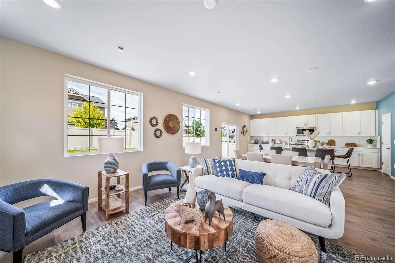 The Esprit floorplan blends modern design with artisanal touches in a home built for flexibility, affordability, and efficiency. This single-family, 2-story layout spans 3,068 sq. ft. in total and offers 4 beds, 2.5 baths, an unfinished basement, and a 3-car garage. Energy efficiency is at the forefront with 2×6 walls and low-E double pane glass for superior insulation, a Rheia HVAC, a 96% high-efficiency furnace, plus electric vehicle and solar ready. All adding up to lower utility bills, backed by our Energy Smart Guarantee and certified as EPA Indoor AirPlus . This home has plenty of curb appeal featuring a multi-textural exterior, front porch, and 5′ privacy fencing. The main level is bright with oversized windows, 9′ ceilings, home-office flex space, and an expansive “heart of the home” great room. Enjoy designer LVP flooring, Shaw carpeting, and Sherwin-Williams paint throughout. The kitchen is complete with a dining island, designer countertops, stainless-steel sink, and large pantry. The spacious primary suite offers a large walk-in closet, double vanity sink, and a tiled spa shower. The 2nd floor also features a laundry room and 3 additional bedrooms with large closets. Buy new from a trusted builder and take advantage of Oakwood Homes’ advanced building practices that lower maintenance costs while providing the best all-around home value and comfort. Thompson River Ranch is a vibrant master-planned community with room to roam. Set against the backdrop of the Rocky Mountains, it offers the perfect blend of natural beauty, convenience, and lifestyle. Residents enjoy amenities including an outdoor pool, clubhouse, disc golf course, parks, trails, and year-round community events, with a brand-new recreation center adding even more fitness and fun opportunities. Families benefit from the highly regarded Thompson School District, and shopping, dining, and major roadways are just minutes away. Artist renderings and/or photography may differ from actual home.