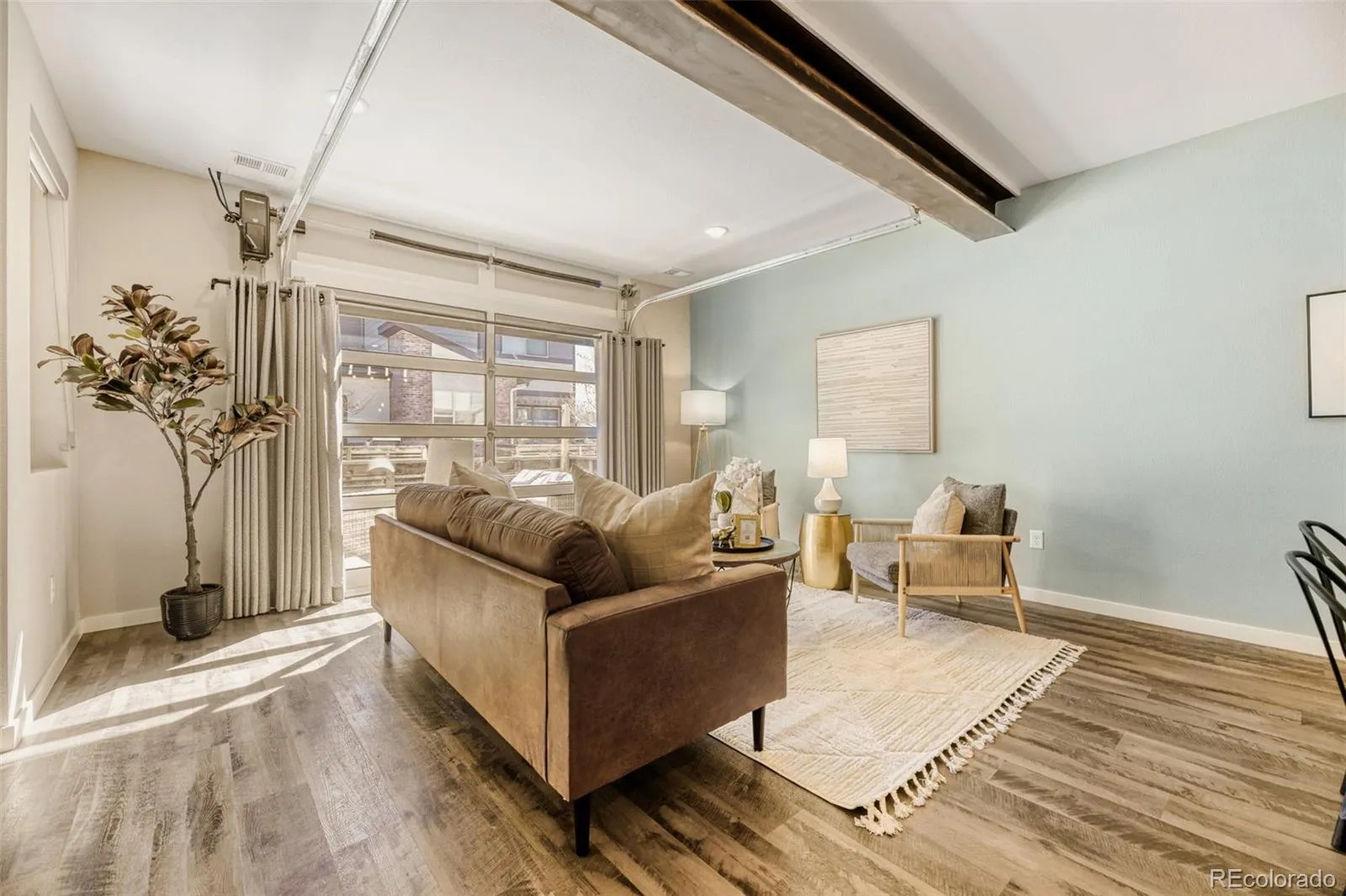 Step into modern living at its finest in this impeccably maintained townhome, where thoughtful design meets effortless style. Freshly painted and filled with natural light, this home makes an immediate impression with soaring 10’ ceilings, an exposed steel beam, and elevated finishes throughout.