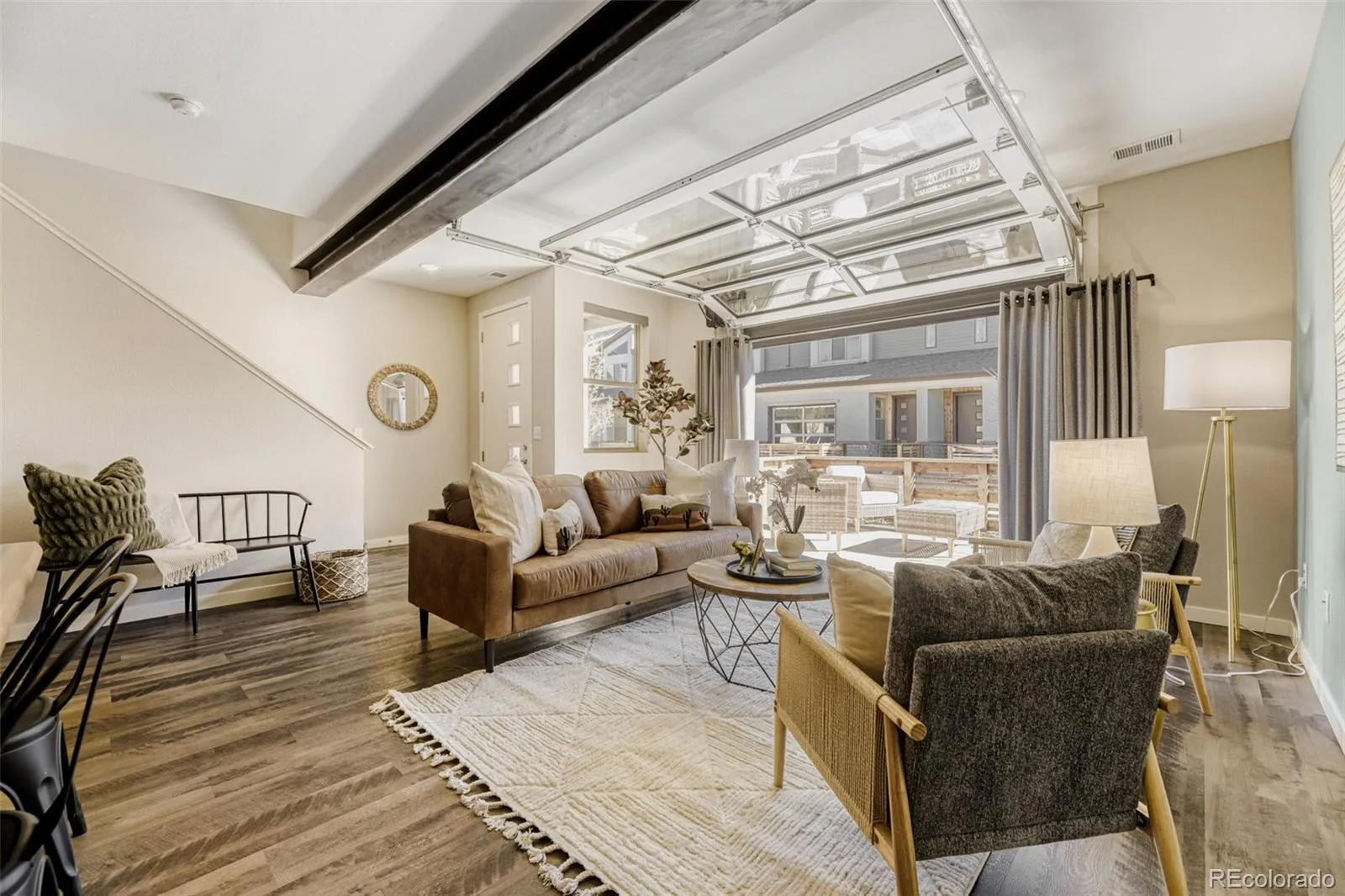 One of the home’s most unique features is the modern garage door that opens directly to the private patio, creating a seamless indoor-outdoor experience—perfect for entertaining or enjoying Colorado’s beautiful seasons. The fully finished garage, complete with drywall and an 8’ door, adds both convenience and versatility.