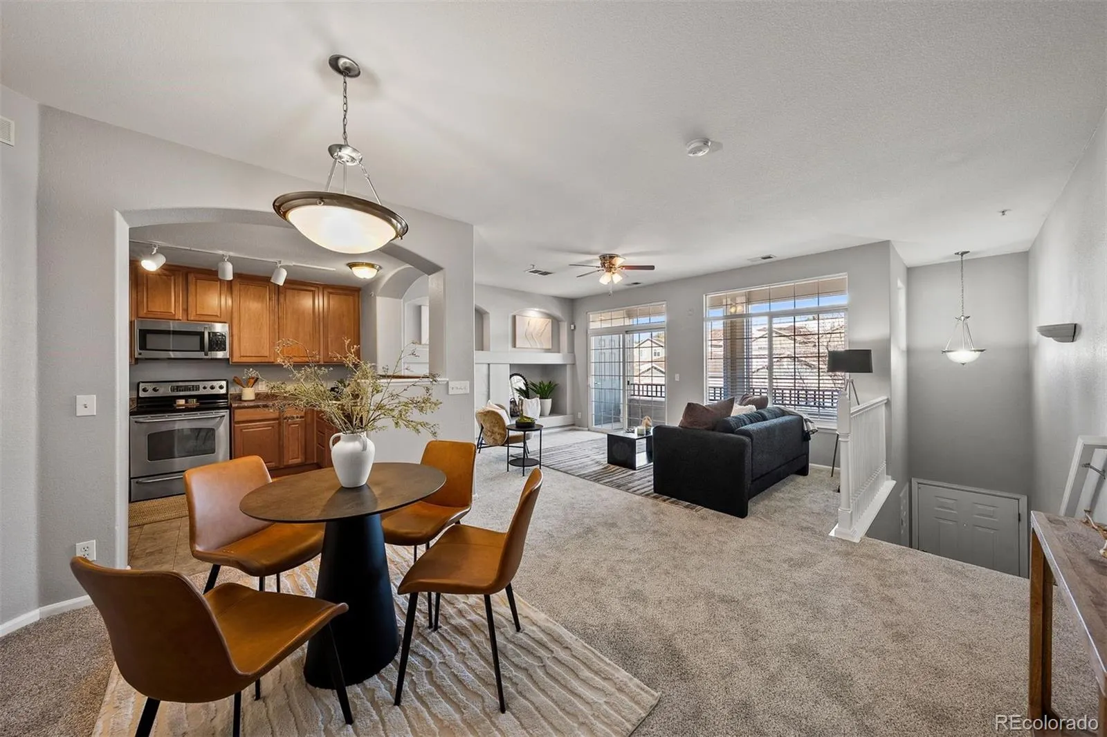 Welcome to Black Feather — This well-maintained, move-in ready condo offers a smart layout, thoughtful updates, and an unbeatable Castle Rock location. Fresh new carpet throughout, an updated cozy electric fireplace with tile surround, and great natural light make this home feel bright and welcoming from the start. The main level features a spacious living area and a functional kitchen with 42-inch cabinets, stainless steel appliances, ample counter space, and a large walk-in pantry. A covered private balcony just off the living area is a nice spot to relax and enjoy the Colorado air. Upstairs, the primary bedroom includes two closets — one walk-in and one side-by-side — plus an ensuite bath with dual vanities and a large jetted tub. A second bedroom, full bath, and conveniently located laundry complete the upper level. Recent updates include a new hot water heater and dryer. The unit comes with a storage closet on the balcony and two dedicated parking spots right out front. Community amenities include a seasonal pool, hot tub, playground park, clubhouse, and large workout gym. Just over a mile from downtown Castle Rock, you’re close to local shops, dining, parks, and trails. Metzler Park is right across the street, and The “Rock” Trail, Plum Creek Trail, and the Castle Rock Recreation Center are all less than a mile away — great access to everything this area has to offer. Enjoy year-round events in downtown Castle Rock such as concerts, festivals and seasonal farmers markets next door at Douglas County High School or downtown at Festival Park. This convenient location offers easy access to I-25, Santa Fe and the DTC for commuting.