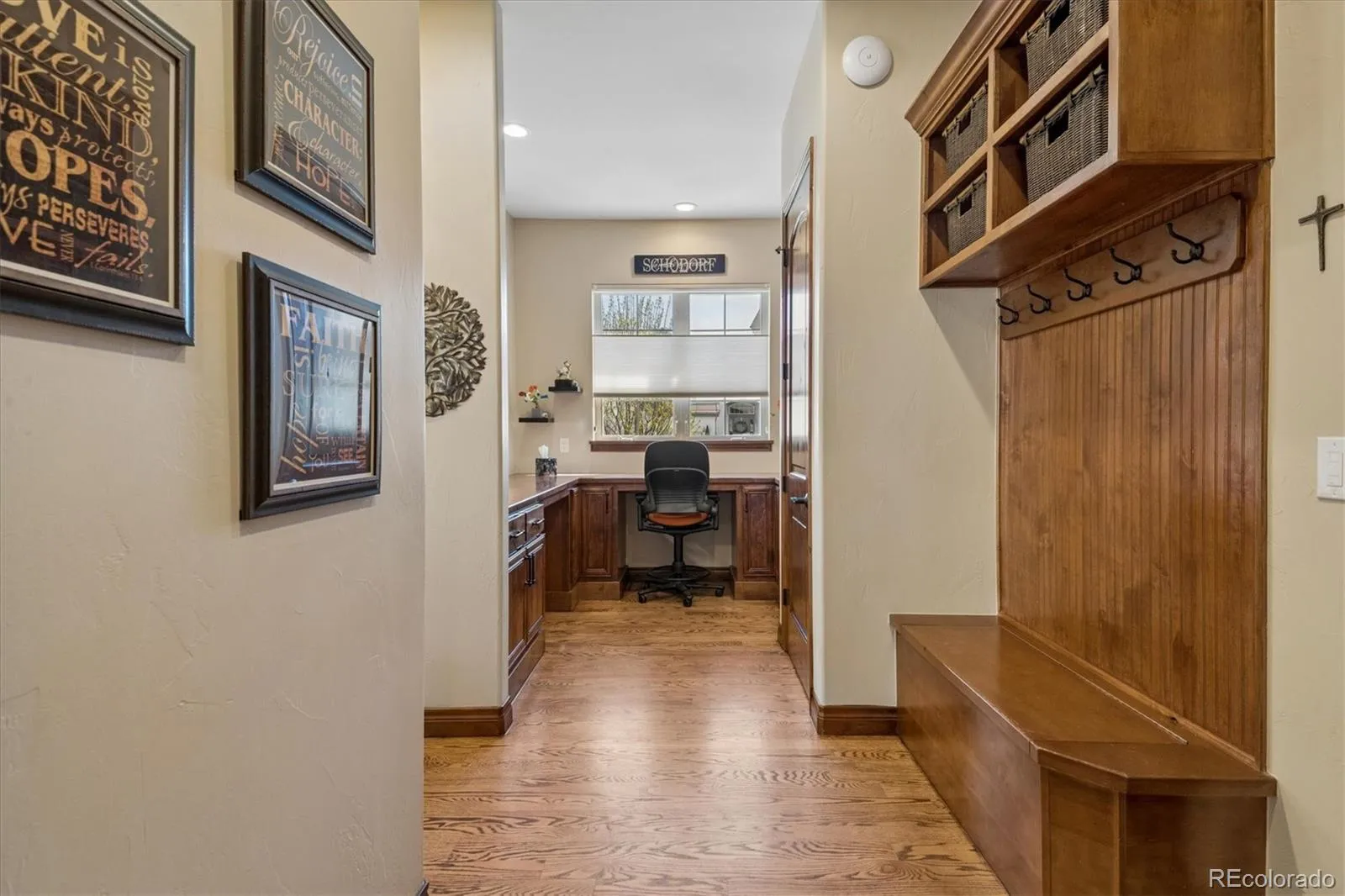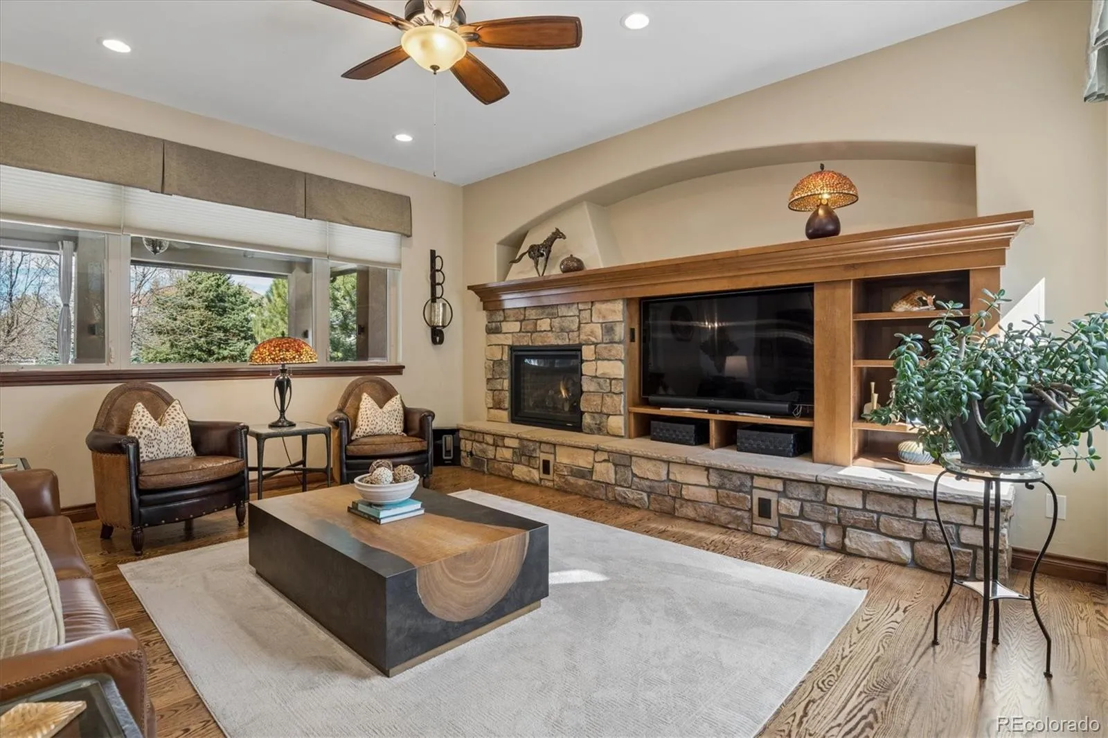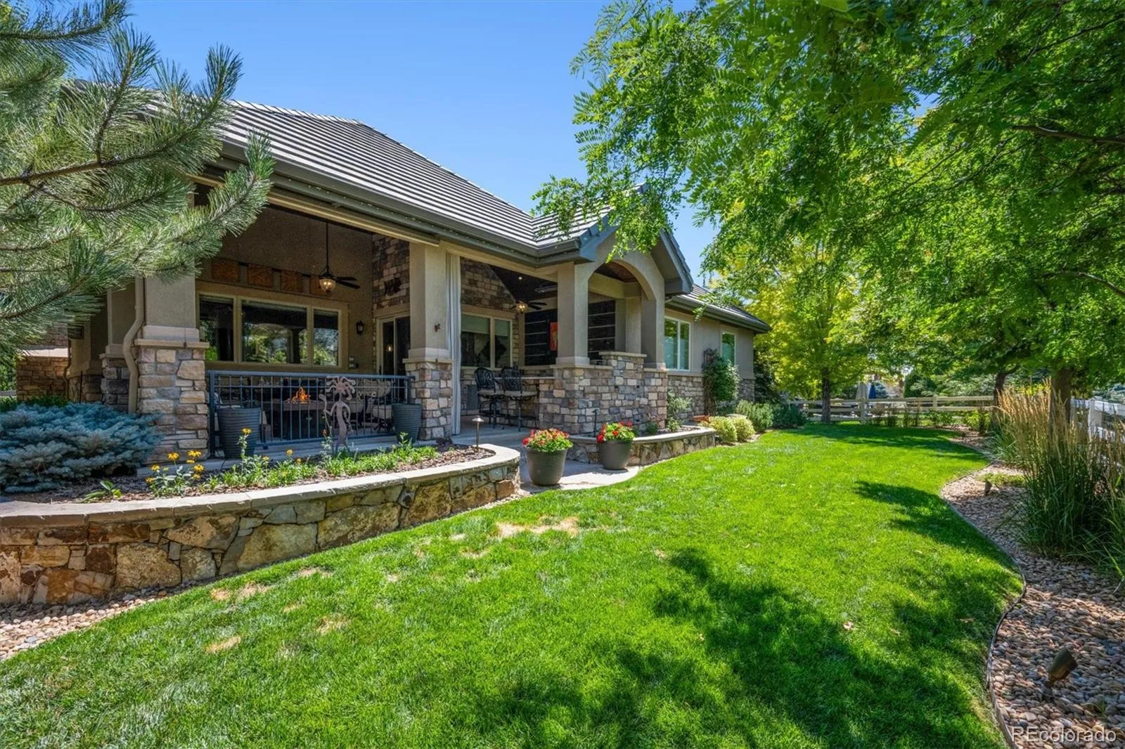 Discover refined living at 14345 Osage Street, a beautifully appointed luxury ranch set on a quiet, low traffic street in the prestigious Huntington Trails community. Designed for comfort, entertaining, and flexibility, this home pairs elegant interiors with resort style outdoor living. Step inside to an inviting open layout featuring 4 spacious bedrooms, including 3 on the main level, plus a private lower-level suite with a full bath—perfect for a permanent bedroom or providing exceptional privacy for visitors. A dedicated office with French doors offers a quiet space for work or study. A convenient main floor laundry room adds everyday ease. The luxurious primary suite is a serene retreat, offering a spa inspired ensuite with dual vanities, a soaking tub, separate shower, and heated floors. The chef’s kitchen is equipped with a gas cooktop, double ovens, trash compactor, and a walk-in pantry. Adjacent to the dining room, a private patio with a walled gas fireplace creates an intimate setting for morning coffee or evening relaxation. The finished basement features high ceilings, a spacious family room with surround sound and large screen, and a custom wine cellar. Smart home features elevate everyday living: the Lutron lighting system, whole home sound, garage doors, and irrigation system all offer convenient app-based control, while the motorized blinds deliver simple automatic control. Step outside to a resort style outdoor kitchen and living area, set amid beautifully landscaped grounds, complete with a vaulted wood planked ceiling, dining and lounge spaces, mounted heaters, and a misting system for year-round comfort. Located near parks, trails, McKay Lake, the community pool, top rated schools, and the shopping, dining, and entertainment of Orchard Town Center, this home offers unmatched convenience with quick access to I 25, Boulder, DIA, Denver, and Northern Colorado. Come experience the thoughtful design and refined living that make this home truly special!