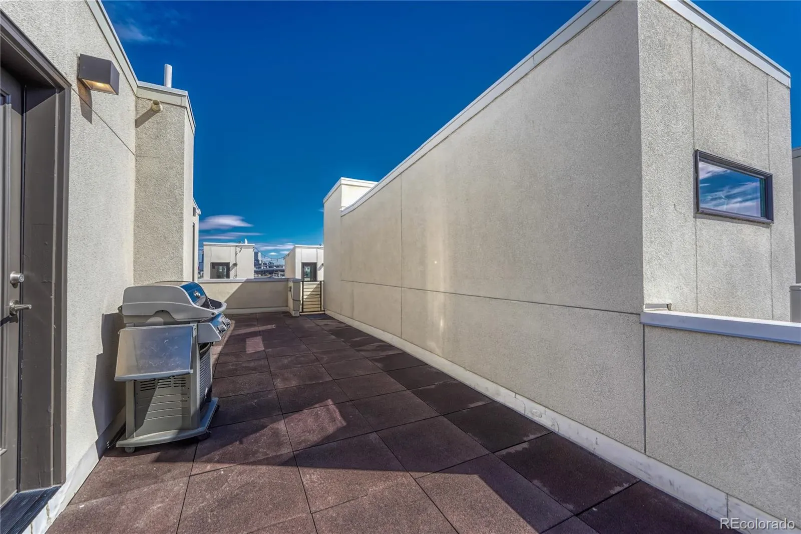 The expansive rooftop terrace includes a gas grill and showcases stunning city and mountain views, perfect for entertaining or relaxing.