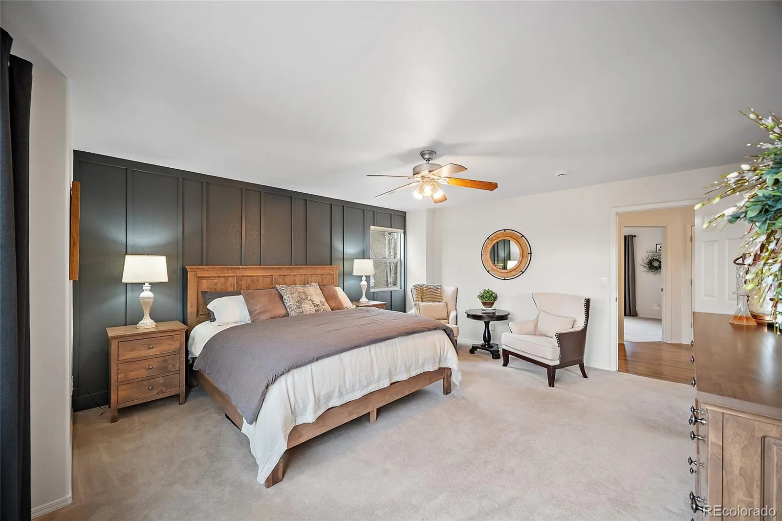 suite offers a true retreat with a custom-built closet and a designer accent wall, while the powder bathroom features