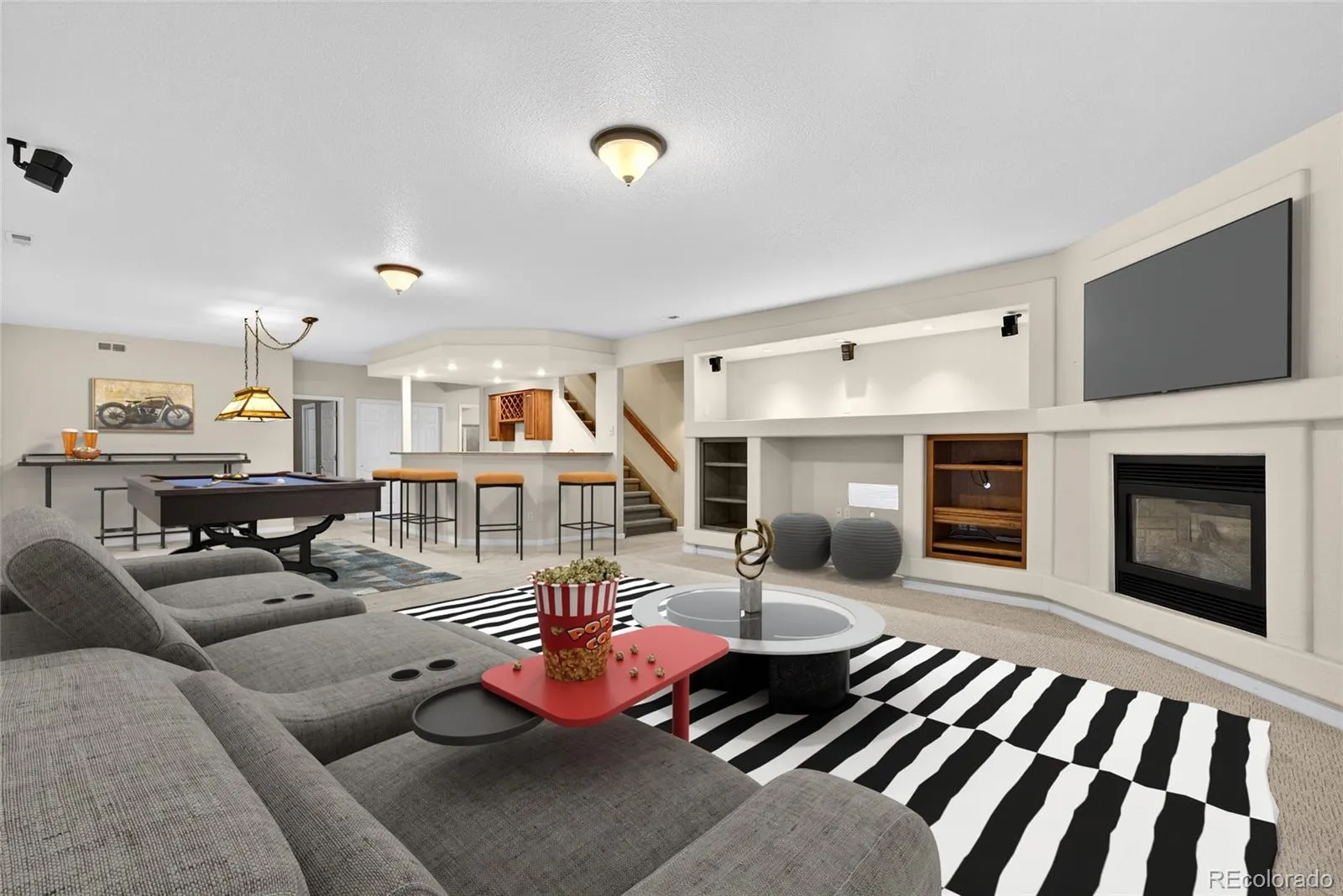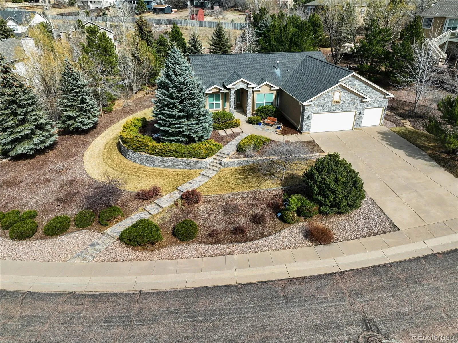 Nestled on a private ½-acre lot, this exceptional ranch-style residence offers the perfect blend of refined elegance and Colorado charm. Designed for both everyday comfort and unforgettable entertaining, the home showcases an extraordinary outdoor living space surrounded by mature landscaping, creating a peaceful backyard retreat. At the heart of the home, the gourmet kitchen is a true culinary masterpiece. A dramatic oversized island with abundant storage anchors the space, complemented by stone countertops, custom cabinetry, soft-close drawers, built-in spice racks, appliance garage, and thoughtfully designed drawer lighting. A downdraft gas cooktop and built-in table with bench seating complete this impressive chef’s kitchen. Adjacent to the kitchen, the vaulted great room welcomes you with expansive windows that frame views of the private backyard, filling the space with natural light and warmth. For more formal occasions, the elegant dining room with coffered ceiling offers stunning mountain views, creating a memorable setting for gatherings and celebrations. The luxurious primary suite serves as a serene retreat, featuring a bay window and a stunning three-sided gas fireplace that adds warmth and ambiance. The spa-inspired primary bath has been beautifully remodeled with a custom walk-in shower, soaking tub, granite countertops, and rich bamboo flooring. The main level also offers a versatile office or guest bedroom with French doors, along with a well-appointed laundry room with utility sink for everyday convenience. The lower level is designed for entertainment and relaxation, featuring a spacious family and theater room with wet bar, built-ins, and an additional fireplace. Two generously sized bedrooms share a Jack-and-Jill bathroom, while the expansive walk-in storage area provides incredible functionality. Additional highlights include A/C, automatic sprinkler and drip systems, storage shed, and a dedicated workshop area with workbench.