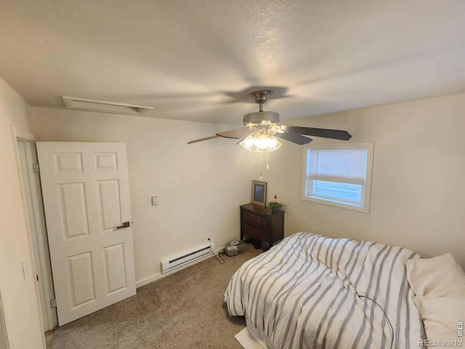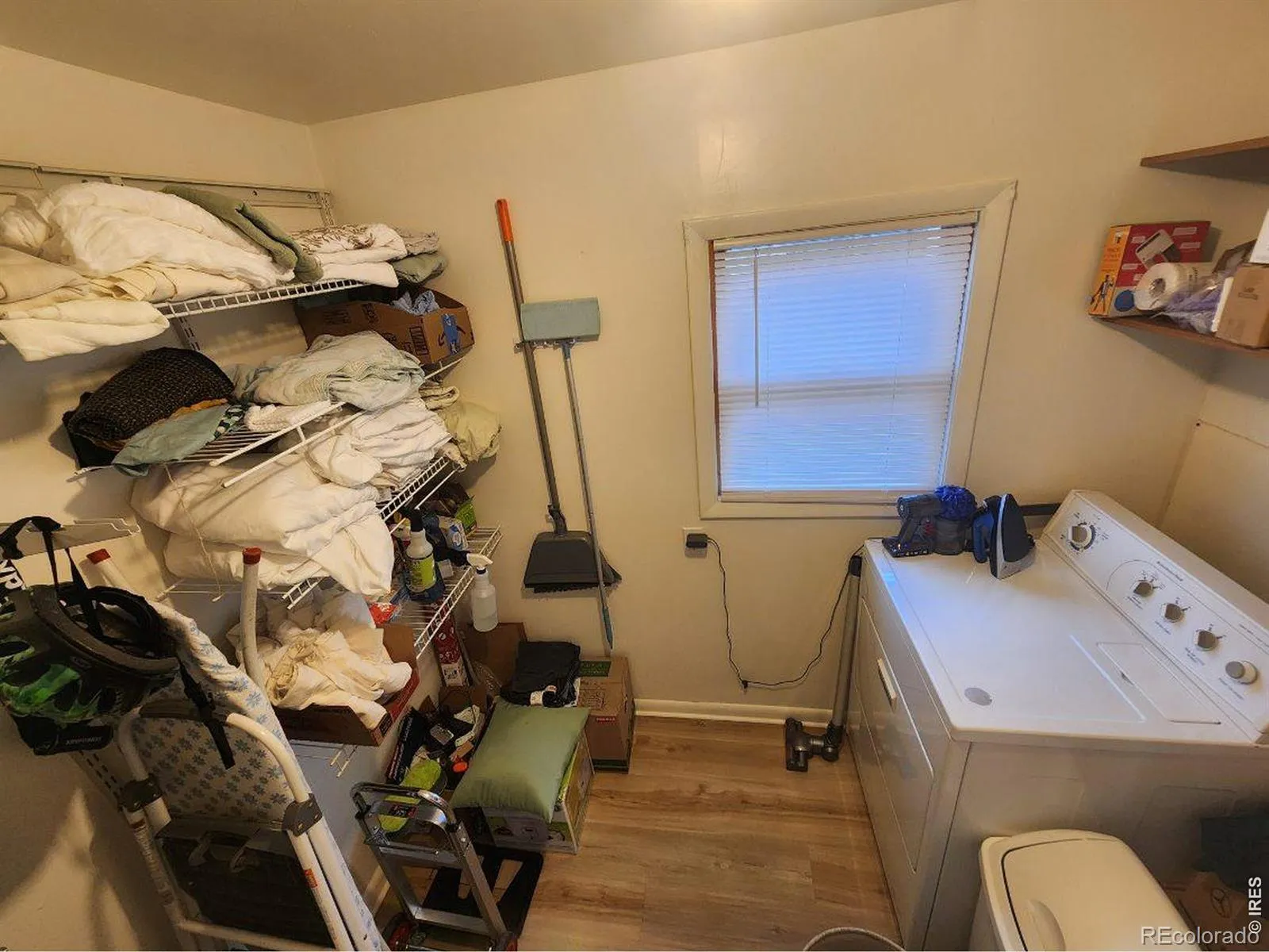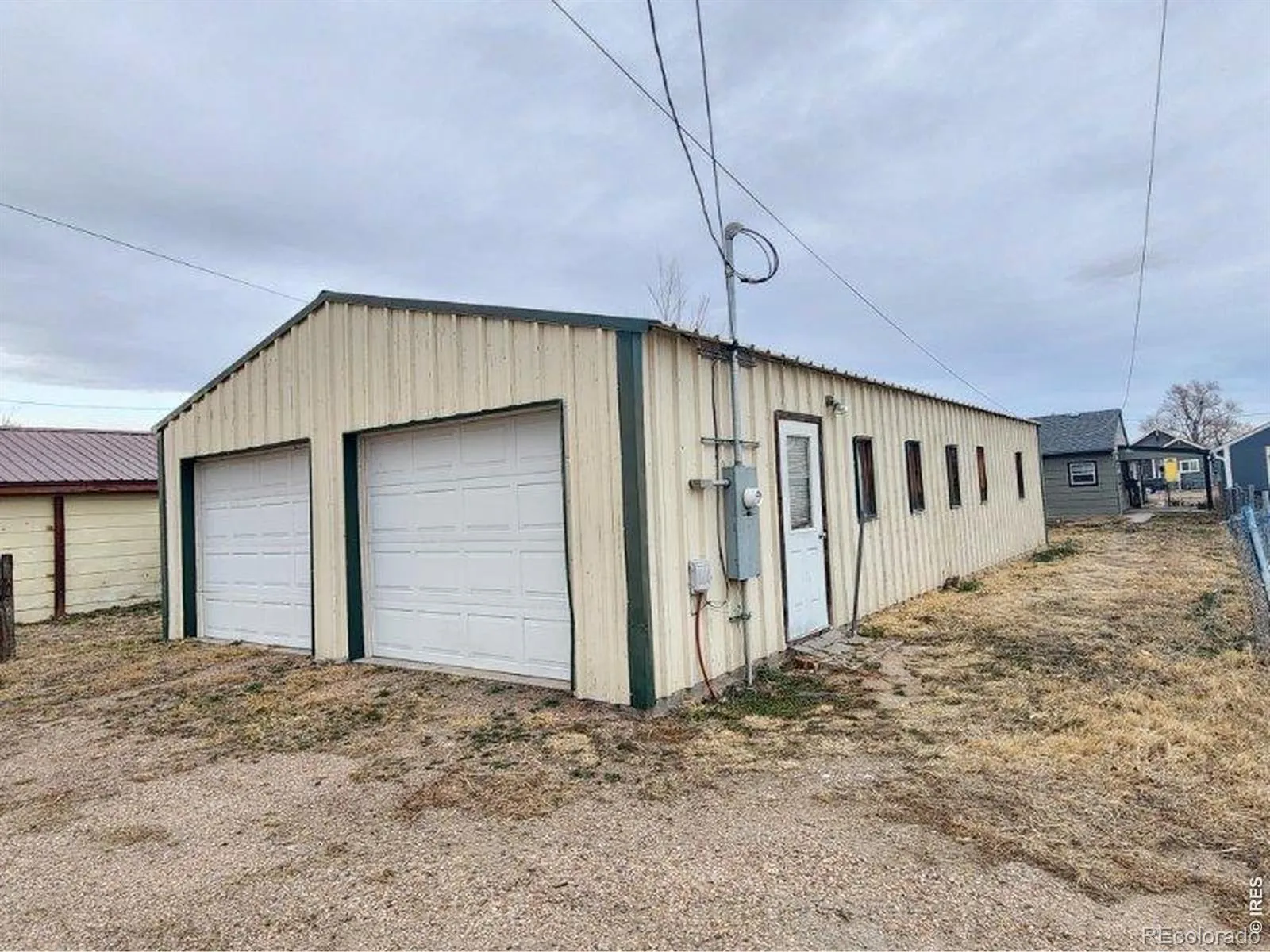 UPDATED and REMODELED 2 bedroom house with a full bathroom, large living room, dining room and a laundry room with shelves and water heater. Laminate click lock flooring, house painted inside and out. There is a gas wall heater between the kitchen and dining room PLUS electric baseboard heaters in the living room, dining and bedroom. STORAGE SHED PLUS HUGE 24’X50′ (1200 square foot) shop with an office area and storage. The shop has a garage door opener, 2 entry doors and a heater (heater is not hooked up to gas meter. Line would need inspected and pressure tested at buyers expense prior to hooking to house gas meter/buyer to confirm with Xcel standards and requirements. Yard mostly fenced; just a small section down from side yard to the shop. FRONT COVERED PORCH AND COVERED PATIO ON SIDE OF HOUSE.