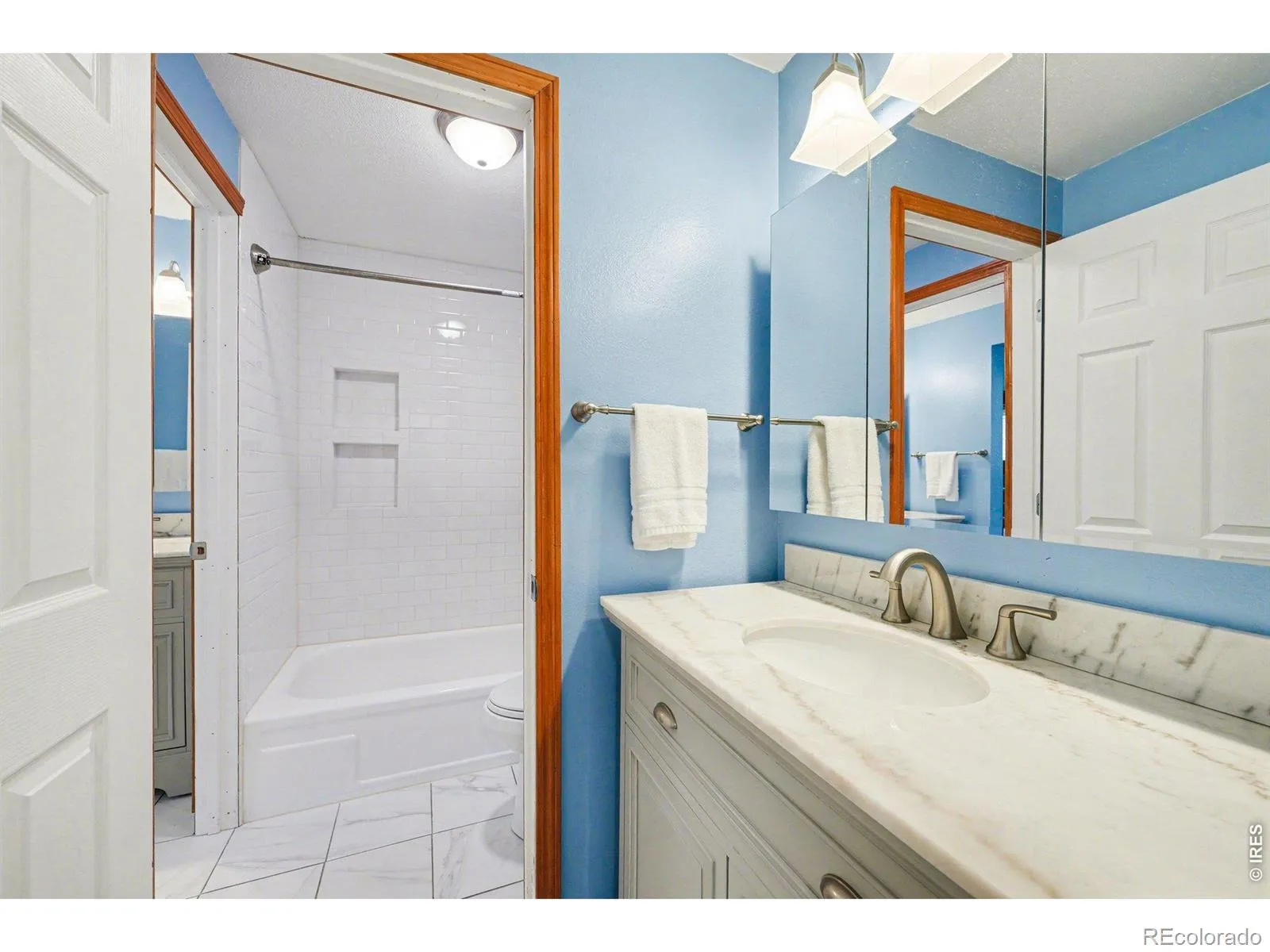 Welcome to this beautifully revitalized 4-bedroom ranch in the sought-after Thompson Valley Ranch. No METRO or HOA! This home is as smart an investment as it is a stunning place to live. The interior shines with fresh paint, new carpet, and premium 3/4″ LVP flooring. The updated kitchen is a standout, featuring granite counters, a floor-to-ceiling pantry, and high-performance Frigidaire appliances. Key Highlights Include Designer Bathroom: Fully remodeled with custom subway tile shower and a separate tub/toilet space splits the 2 private cultured marble vanities. Chef’s Station: 18-gauge stainless sink with built-in cutting board, colander, and drying rack. Peace of Mind: Brand-new roof installed August 2024 with a 30-year manufacturer warranty. Outdoor Living: Large corner lot with 2 R/V boat parking areas, two storage sheds, and flourishing garden beds. Located just a mile from the Loveland bicycle loop and tucked away near a quiet cul-de-sac, this home offers the perfect balance of activity and privacy. Schedule your showing today to experience this Thompson Valley standout! Please see Docs Tab for Floor Plans, Home Flow Tour, 3D and Virtual Tours.