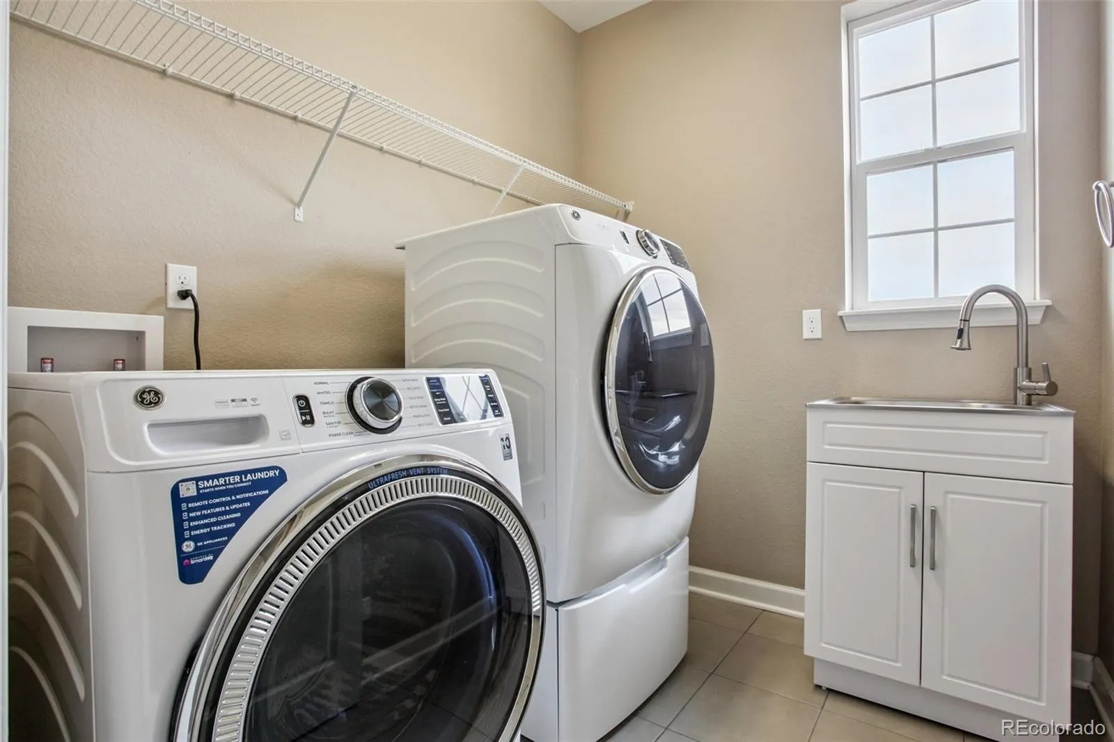 Upstairs, the expansive primary suite offers a peaceful retreat with a sitting area, spa-like 5-piece bath, and generous walk-in closet. Three additional bedrooms include a Jack-and-Jill bath and a private en suite that make busy mornings easy for family or guests. The upstairs laundry room with sink and newer washer and dryer keeps routines convenient, while additional main-floor hookups add flexibility.