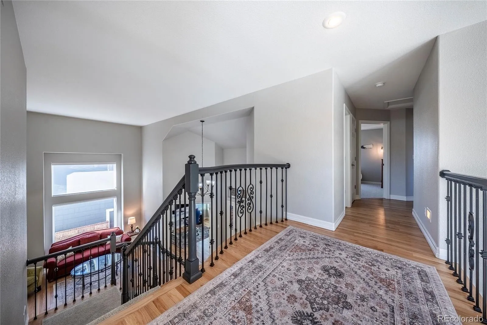Beautifully REMODELED home on a private lot BACKING TO OPEN SPACE in the highly sought-after Stonegate community. This meticulously maintained home features extensive renovations completed in 2025, a stunning primary bathroom remodel with quartz countertops, floor-to-ceiling tile, and a freestanding soaking tub,& fully remodeled guest bathroom. The finished basement features new drywall, a remodeled bathroom, new basement windows, custom shelving, & abundant storage space. Hardwood floors throughout most of the main & upper levels, recently refinished in 2025, custom hardwood stairs crafted by a master carpenter & elegant iron railings. Fresh interior paint throughout the entire home (2025) and new carpet in the upper bedrooms and stair runner provide a move-in-ready feel. The bright gourmet kitchen offers stainless steel appliances, granite countertops, pantry storage, and upgraded 48-inch cabinetry, while premium triple-pane windows throughout the home fill the space with natural light and enhance comfort and energy efficiency. Step outside to enjoy the private backyard with open space behind the home, professionally designed landscaping, and a custom concrete patio and sidewalks completed in 2023, creating the perfect setting for relaxing or entertaining. Major exterior improvements include a new Class-4 impact-resistant roof (2024), full exterior repainting (2023), and upgraded downspouts/gutters with leaf guards. Additional highlights include: Dedicated office with French doors – ideal for working from home*Spacious bedrooms and excellent natural light throughout*hardwood flooring across most living areas*thoughtfully updated basement living space. Located just minutes from downtown Parker, shopping, dining, and easy access to C-470 and I-25. Outstanding amenities: clubhouse, pools, tennis courts, pickleball courts, parks, playgrounds, & miles of trails. A rare opportunity to own a beautifully updated home with privacy, open space, & extensive recent upgrades.