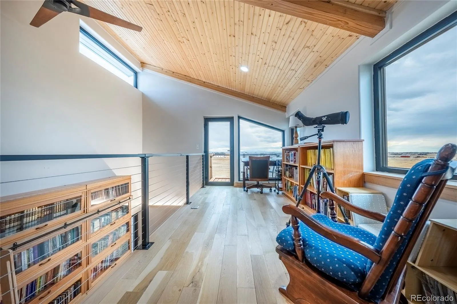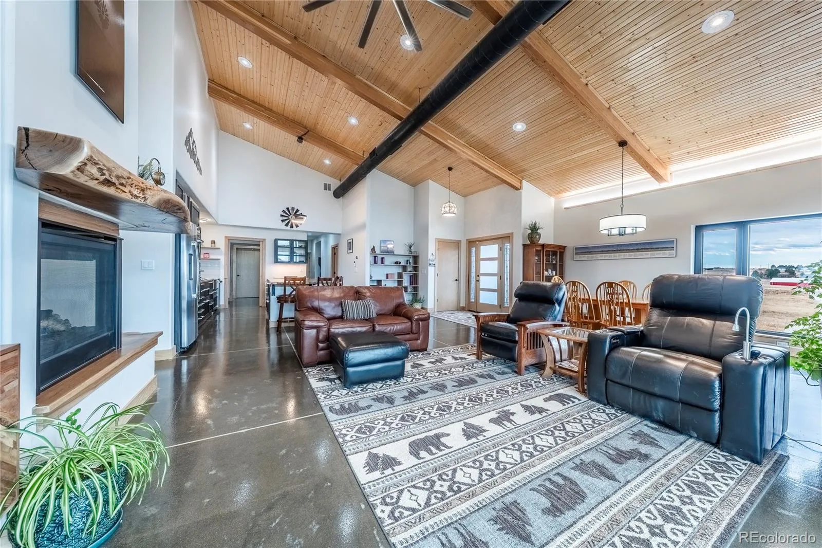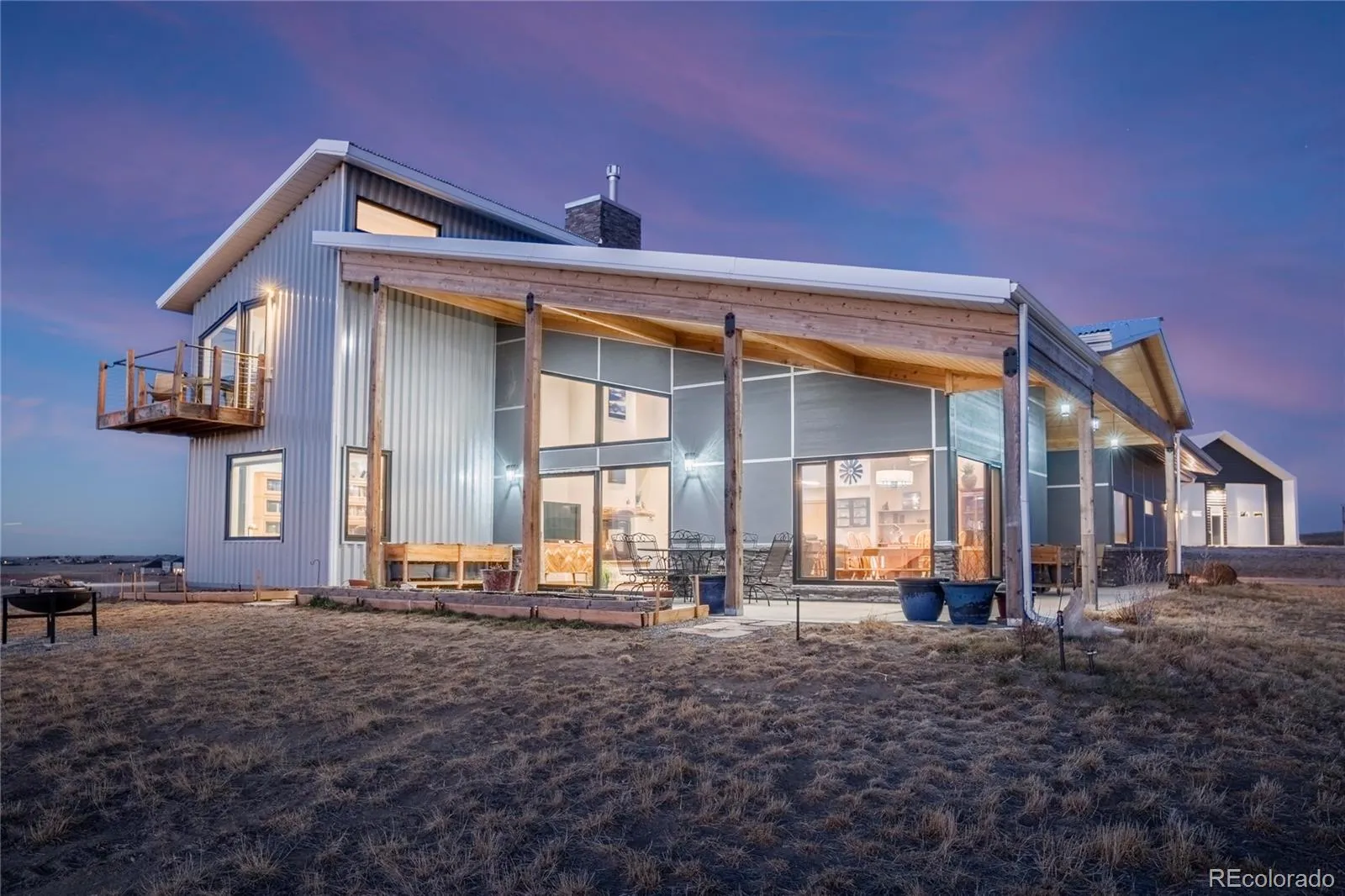 Set on 35 breathtaking acres w/ panoramic Rocky Mountain views, this property offers a rare opportunity for multigenerational living w/ a total of 6 beds & 5 baths, income potential, or the ultimate Colorado lifestyle retreat. Featuring two custom homes & a massive 40’x64’ shop, the property combines space, functionality, & unforgettable scenery just minutes from Parker, Southlands, and Elizabeth.The primary residence is an impressive 4-bedroom, 3-bath home plus loft designed to capture the surrounding views and natural light. Soaring vaulted ceilings & expansive windows create a bright, open feel throughout the thoughtfully designed floor plan. The kitchen features SS appliances, a massive island with bar seating, and an eat-in dining space, all flowing into the main living area highlighted by a cozy wood-burning fireplace. The main-floor primary suite offers a spa-like five-piece bath & oversized walk-in closet. A giant dedicated office provides ideal work-from-home flexibility. Upstairs includes a loft, three additional bedrooms, & a full bathroom, while the unfinished basement with 10’ ceilings provides endless possibilities for future expansion. Additional features include 9’ ceilings on the main floor, a custom staircase, a unique 23’ climbing wall, and a tandem 2-car garage with EV charging.The second home is equally inviting with 2 bedrooms, 2 bathrooms, a spacious office/library, and radiant in-floor heating. An open layout, gas fireplace, & large windows showcase the same spectacular mountain views, creating a warm & comfortable space ideal for guests, extended family, or rental use. Completing the property is a 40’x64’ custom shop with dual roll-up doors, 6” concrete floors, 200-amp service, & a 15’x40’ loft for additional storage, offering exceptional space for equipment, hobbies, or business use. With wide-open acreage, incredible panoramic mountain views, & unmatched versatility, this truly one-of-a-kind Colorado property offers endless possibilities.