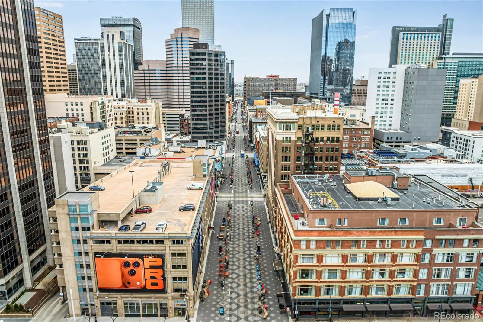 Experience elevated city living in this 1-bedroom, 1-bath residence offering 816 square feet in the iconic SPIRE high-rise. New Paint throughout. Built in 2009, this modern condo blends sleek design, walkable convenience, and stunning urban views in the heart of Downtown Denver. Step inside to soaring ceilings, expansive windows, and rich wood flooring that create a bright, open feel. The open-concept layout seamlessly connects the living, dining, and kitchen areas—ideal for entertaining or relaxing above the city. The kitchen features slab granite countertops, stainless steel appliances, modern cabinetry, and a generous island perfect for casual dining. A private balcony extends your living space outdoors with breathtaking skyline and mountain views. The spacious primary bedroom includes a walk-in closet and direct access to the full bath, offering comfort and functionality. Clean lines and contemporary finishes continue throughout the home, creating a sophisticated, move-in-ready space. Additional highlights include in-unit laundry, central air, secure building access, and one deeded garage parking space (#480) and Storage SA 204 (Use Only). SPIRE residents enjoy resort-style amenities including a year-round heated pool and hot tub, state-of-the-art fitness center, yoga studio, multimedia lounge, private event spaces, and 24-hour front desk service. With a Walk Score of 97, you’re steps from the Denver Performing Arts Complex, Larimer Square, 16th Street Mall, dining, nightlife, and light rail access. Modern design. Unmatched location. Elevated lifestyle. Welcome home.